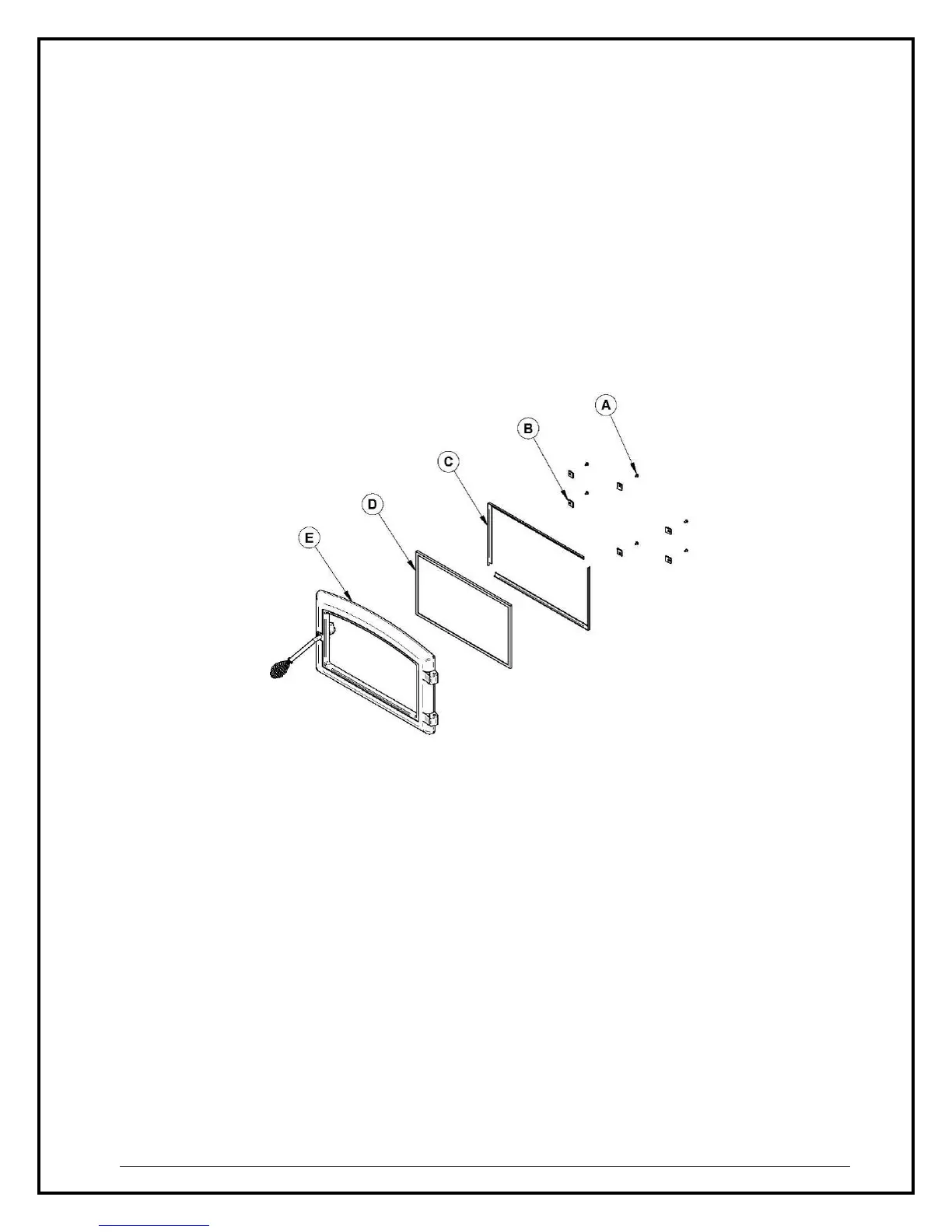 metal frames (C) that holds the glass to the door frame (E). Lift out the glass (D) and pull off the old