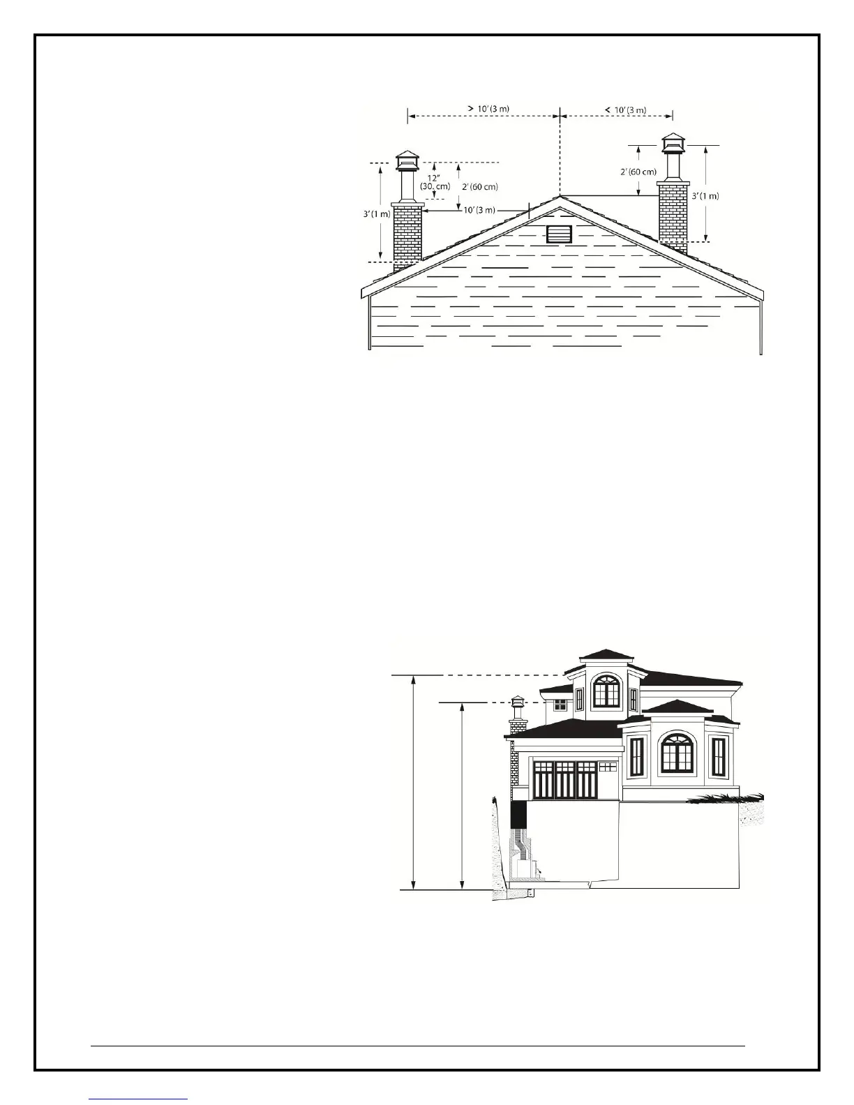 chimney must extend at least 1 m (3