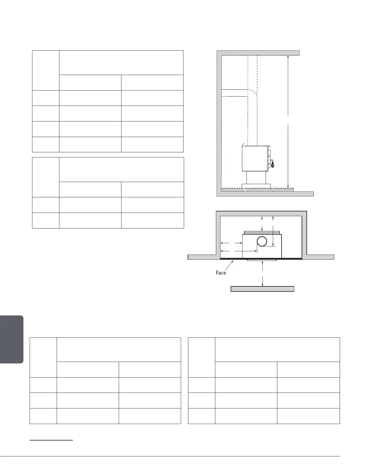 The pipe distances listed in this table refer to the distances obtained when the stove is installed in accordance with the appliance clearances