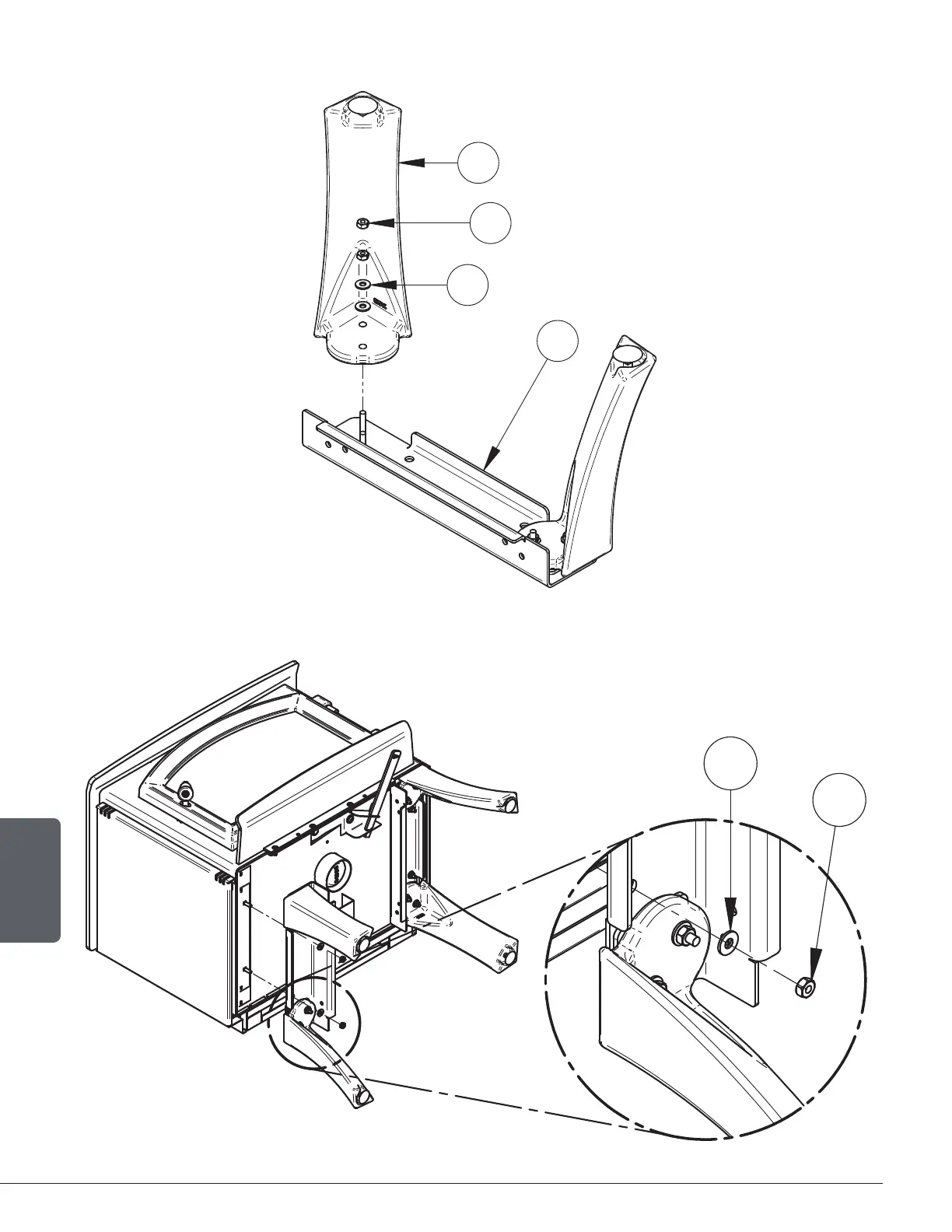 4. With the nuts (C) and washers (B) removed in step 2, secure both leg assemblies to the stove.