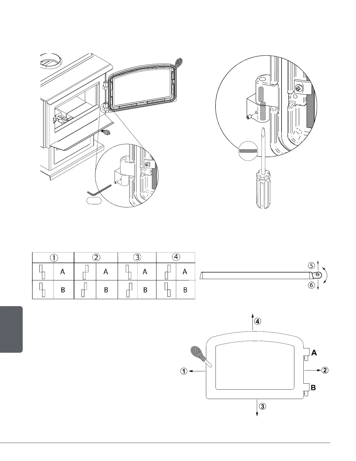 Configurations 1-2-3-4-5-6, show in which direction these act on the adjustment of the door.