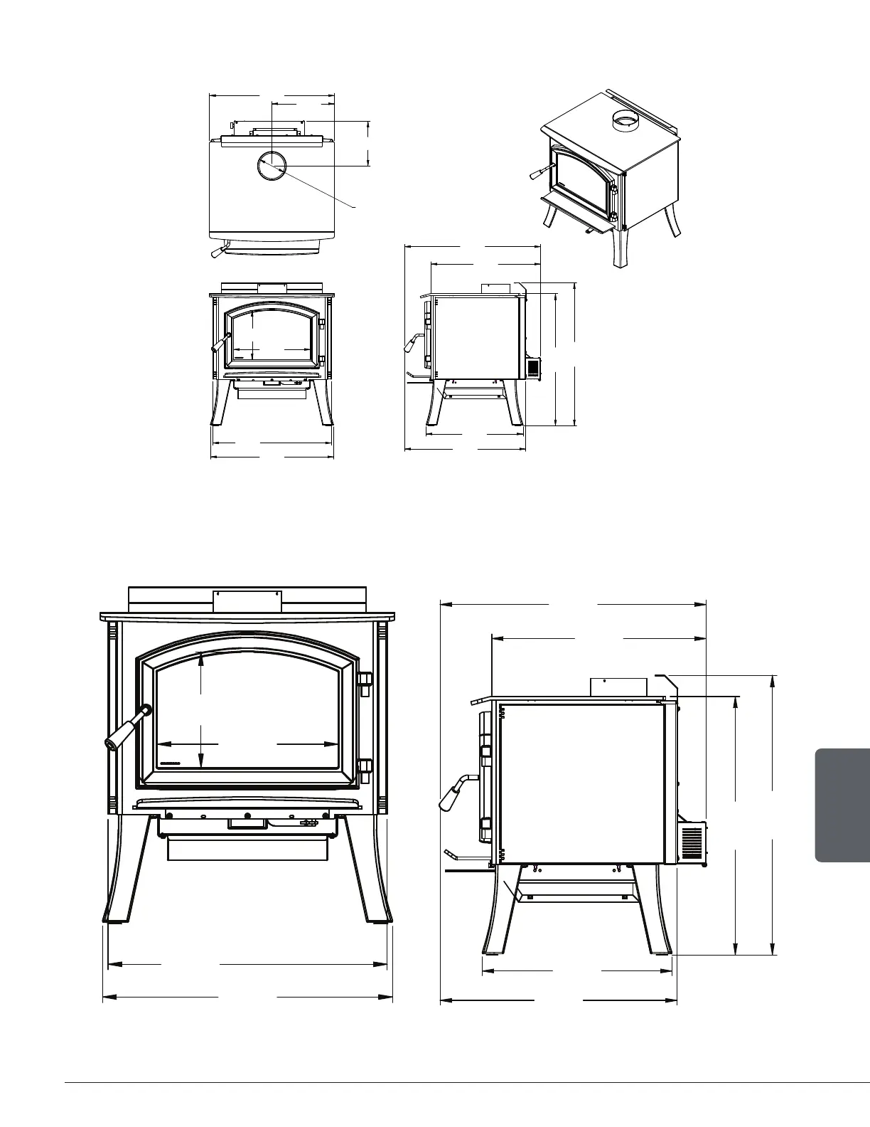 2.3.3 Stove Dimensions with Round Legs