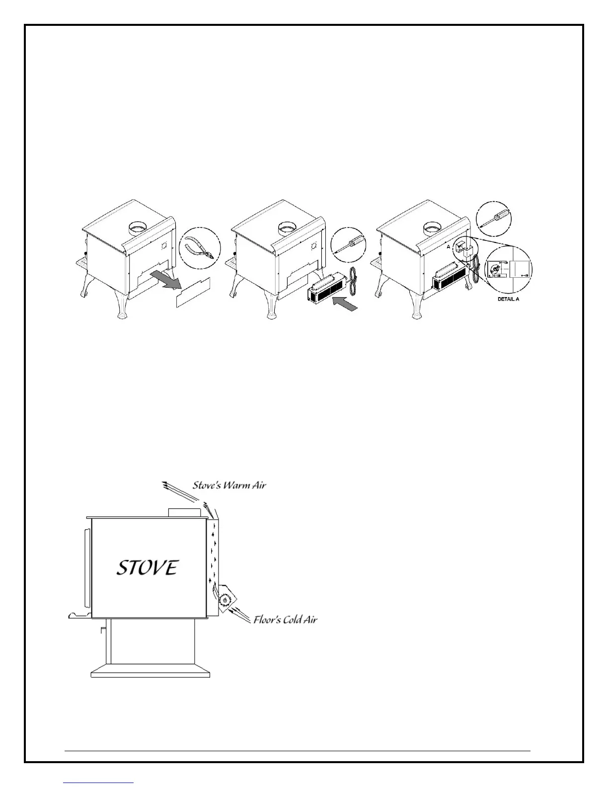 An optional fan can be installed on the back of the stove to increase the flow of air past heat