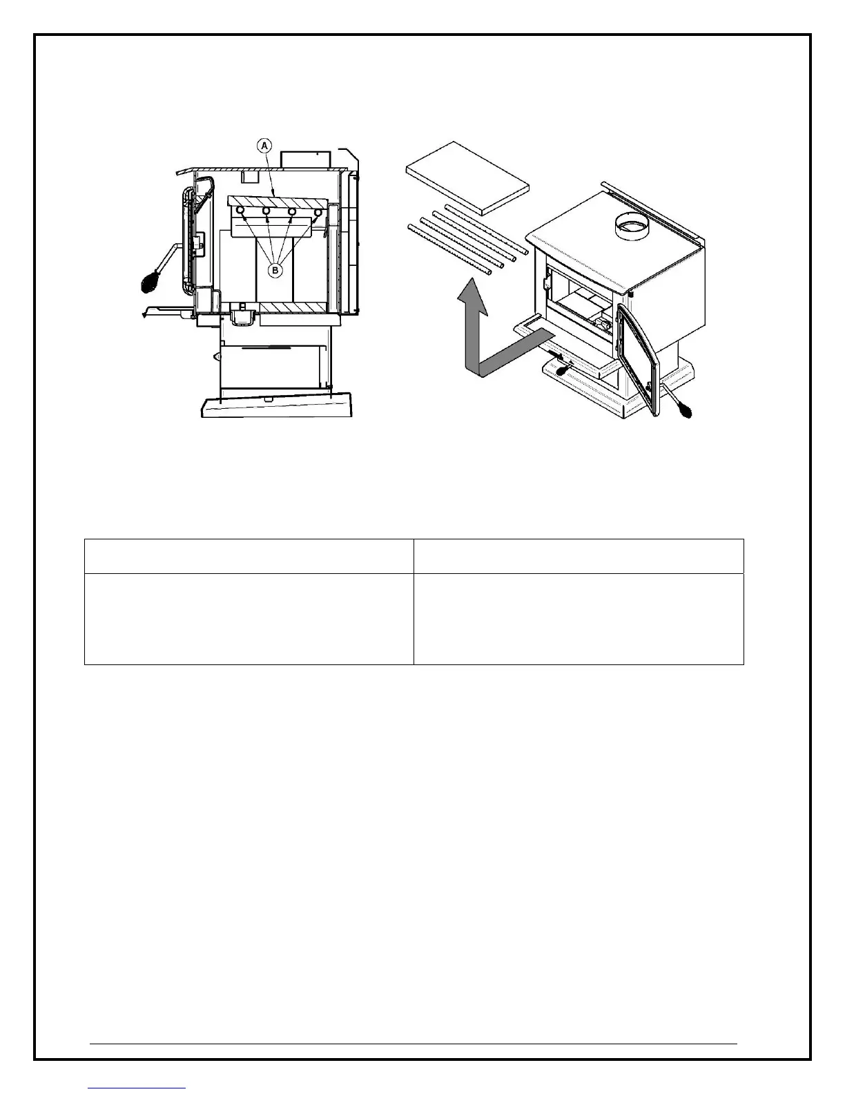 Note that secondary air tubes (B) can be replaced without removing the baffle board (A).