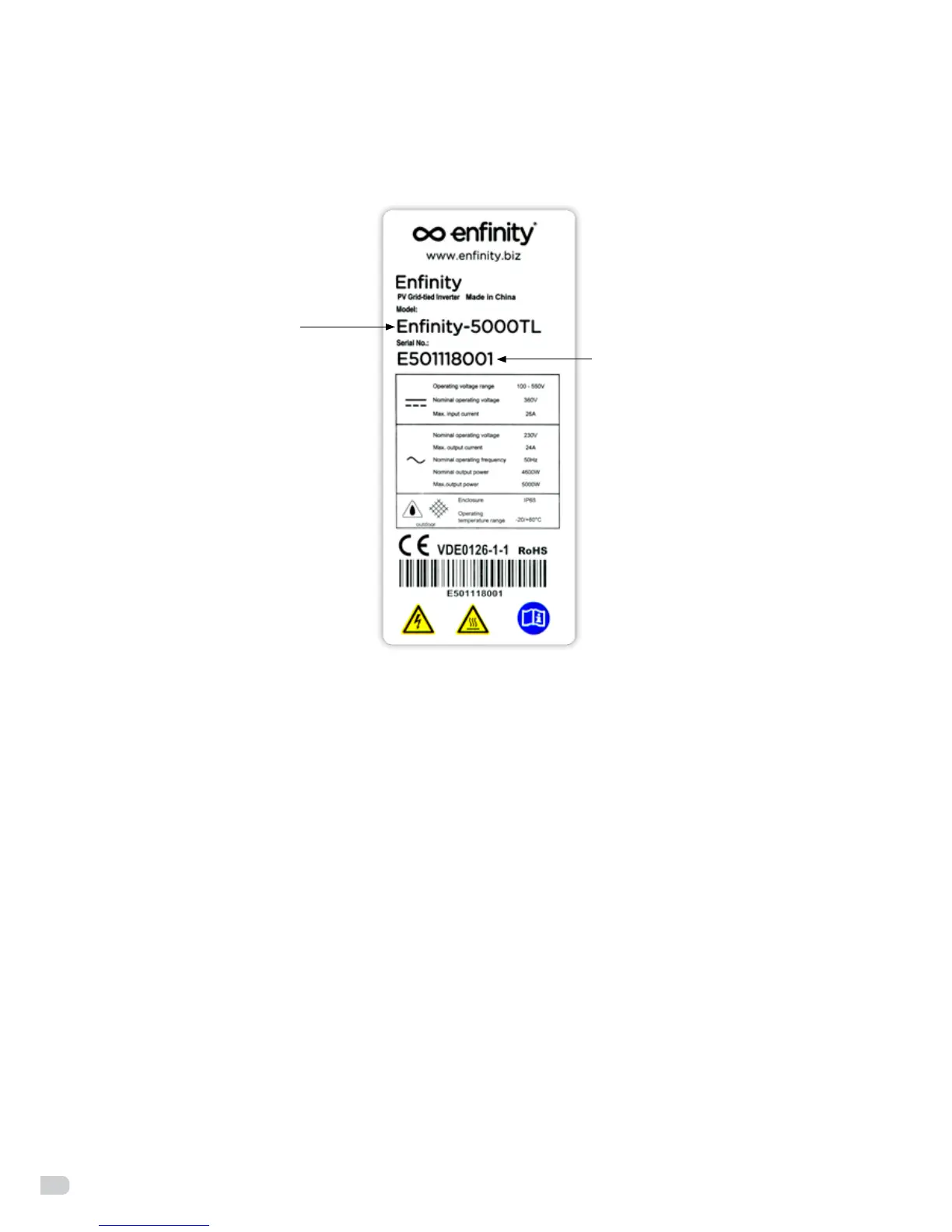 You can identify the Enfinity inverter type by the product label found on the right-hand side of the housing.