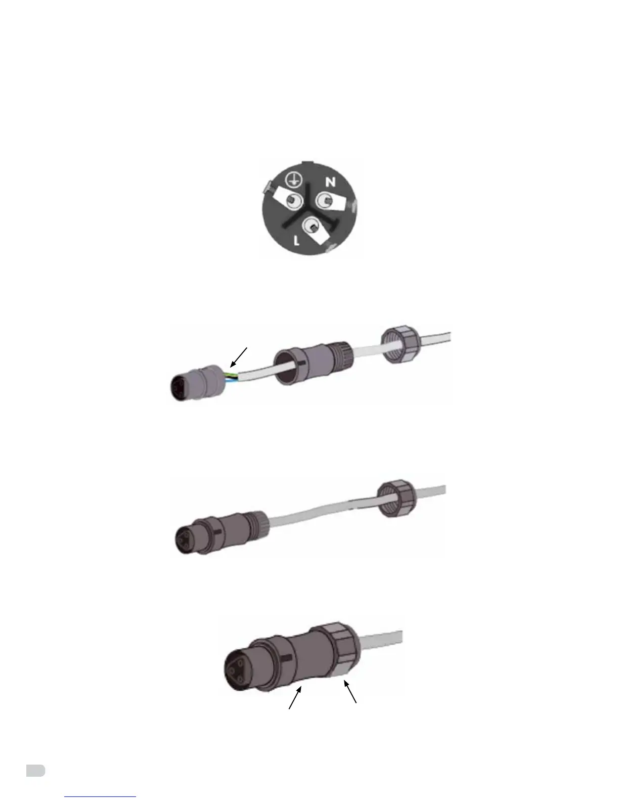• ScrewtheblackorbrownwiretotheL(Line)terminatorintheACconnector.