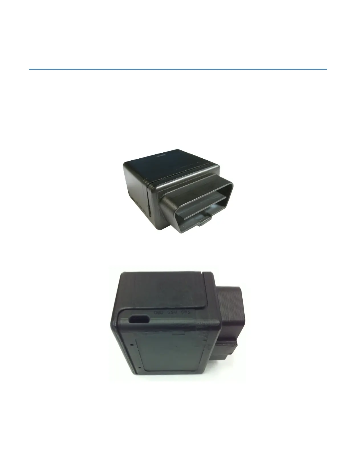 GPS antennas, internal SIM card holder, J1962 complaint OBDII connector, micro USB connector, and 3 LED