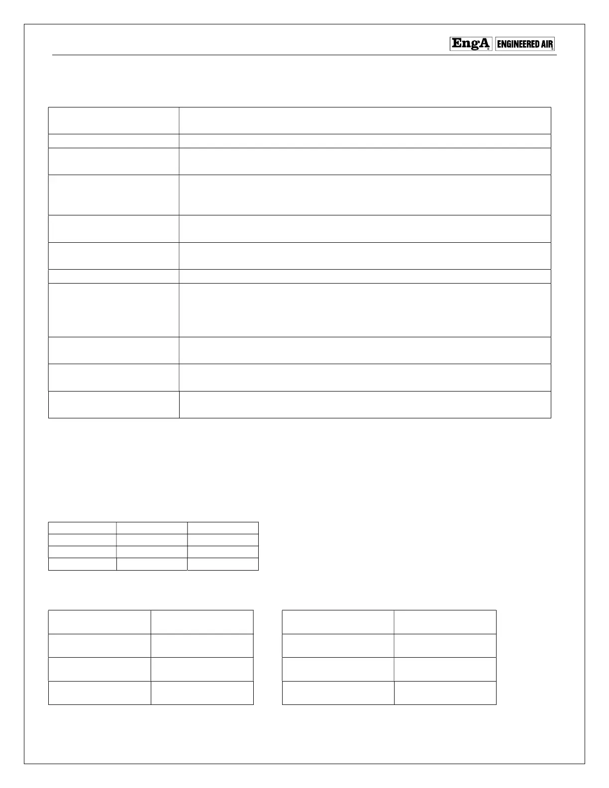 Non-adjustable trip setpoints noted in the table below, measured as in.wc. (Pa). If the unit is designed for