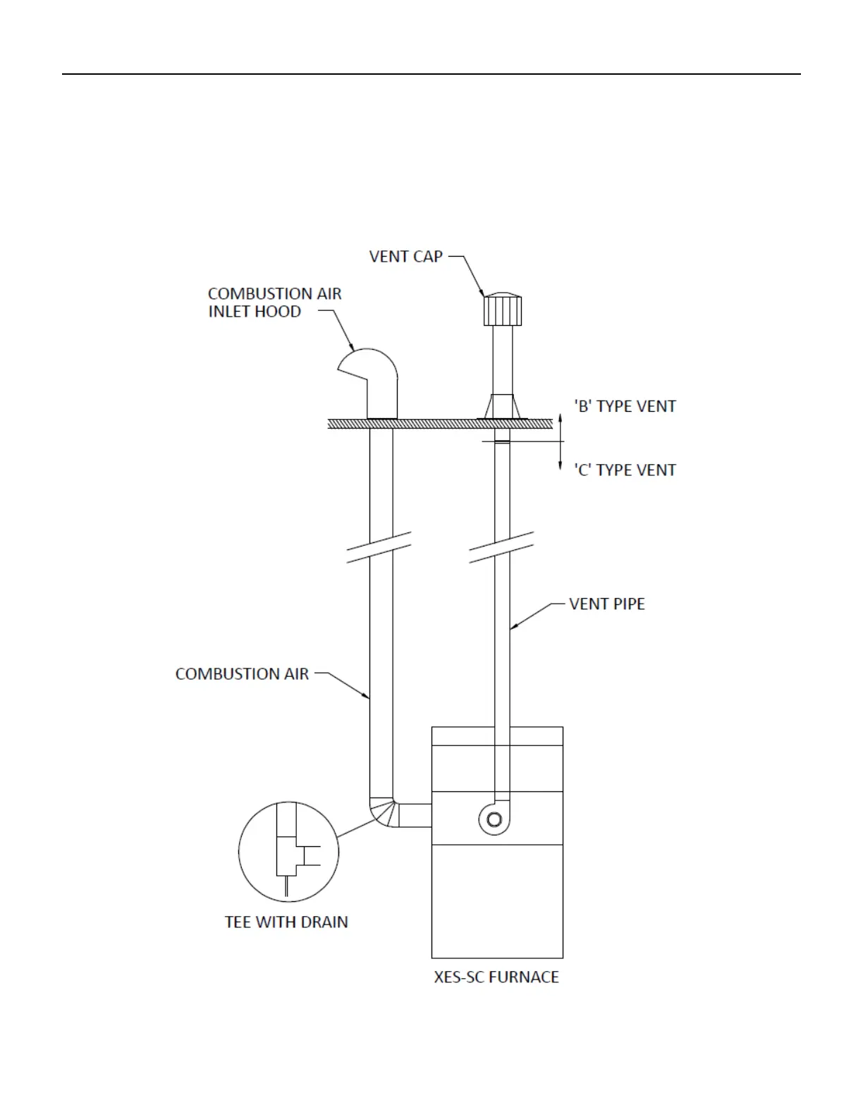 of the vertical vent system. The vent in this arrangement is category 1. ‘B’ Vent is acceptable. Installer