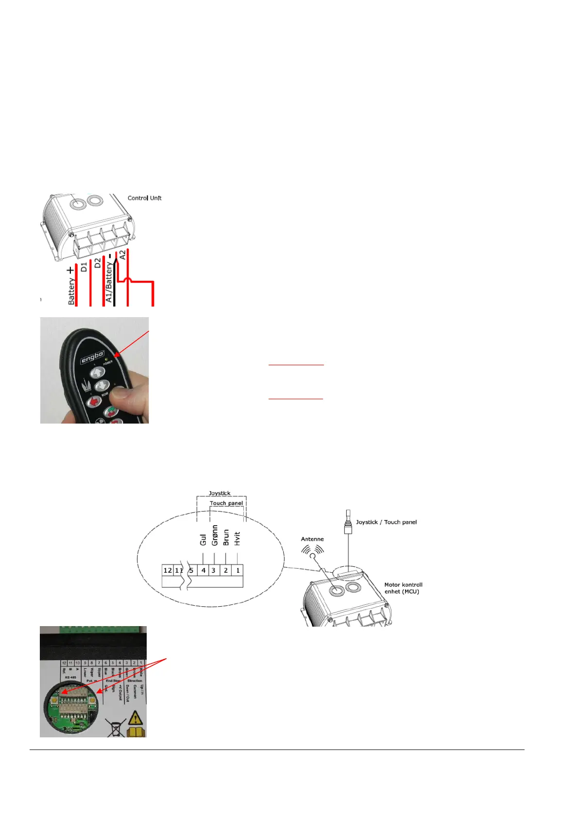 • Kontroller tilkoblingene av kablene fra joystick/panel på den grønne MCU terminalen.