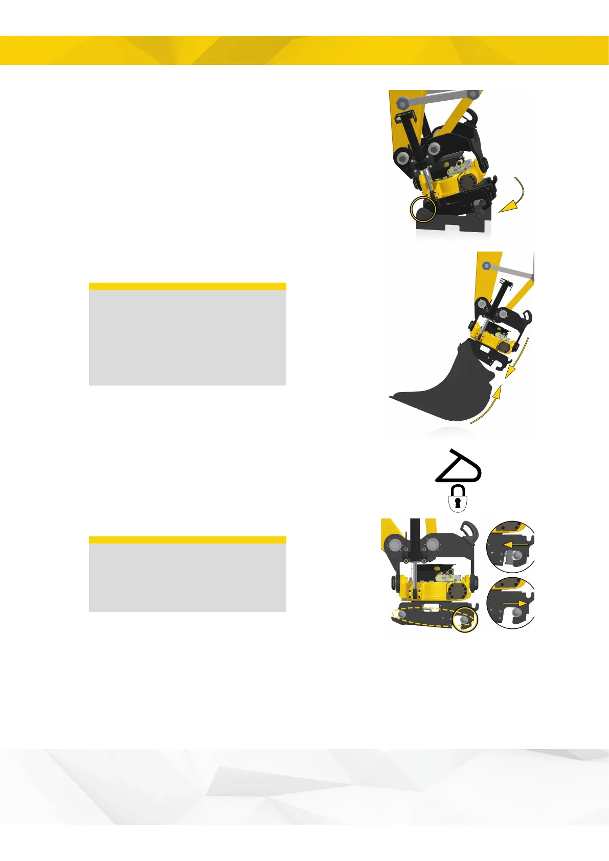 7. Activate the quick coupler lock function. The quick