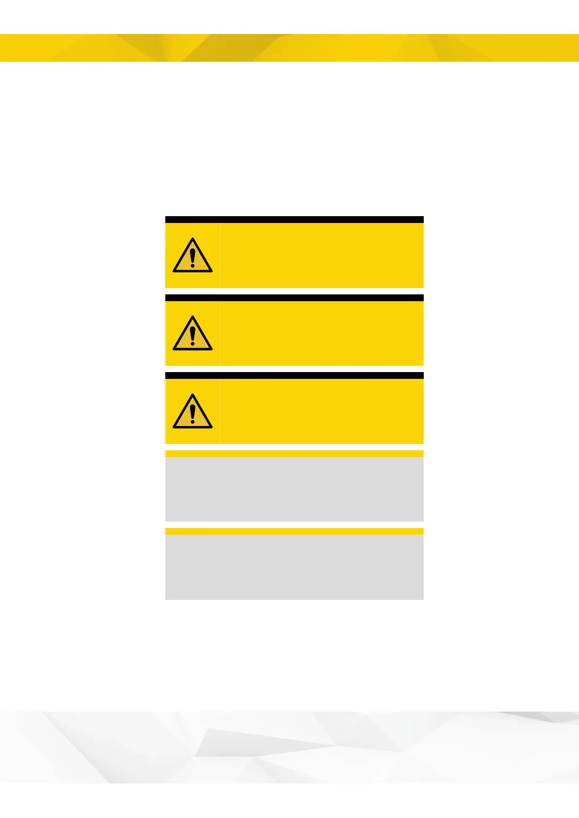 supplied. The warning texts highlight potential risks and describe how to
