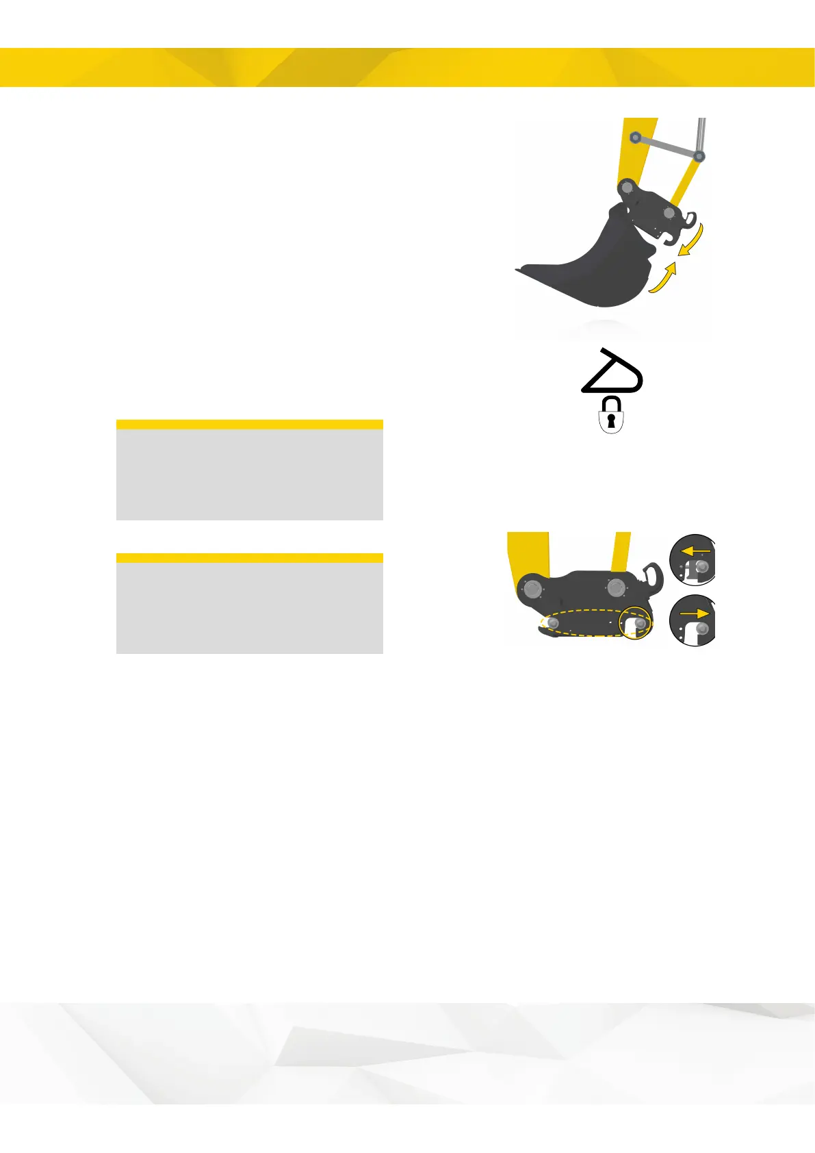 Activate the quick coupler lock function. The quick coupler
