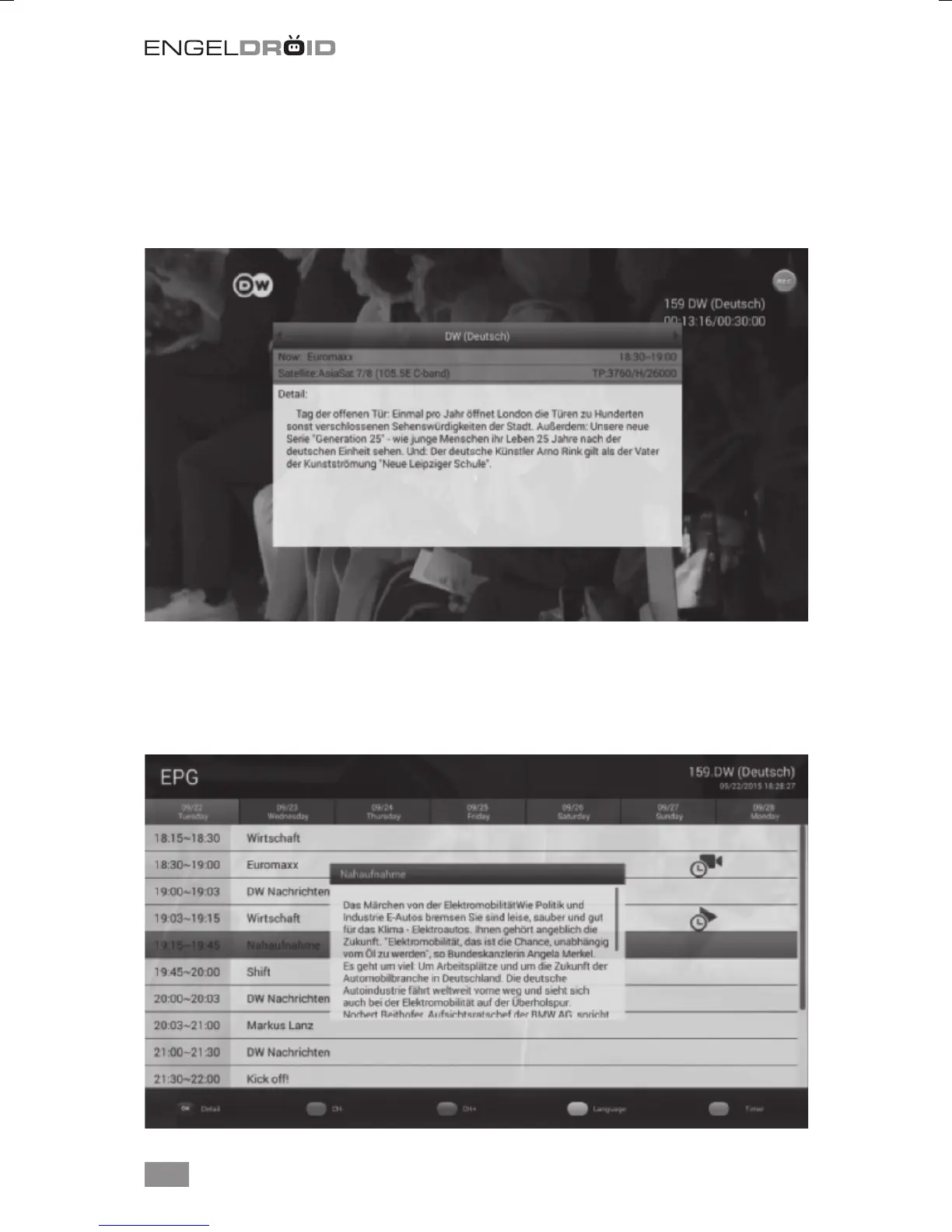 te l’EPG actuel / suivant et sur 21 jours. Appuyer sur Information pour acher l’EPG