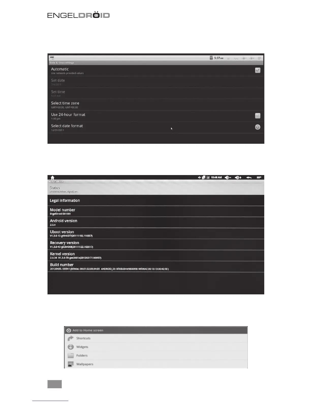 Press left mouse button on the home screen for a while to add Shortcuts, Widgets,