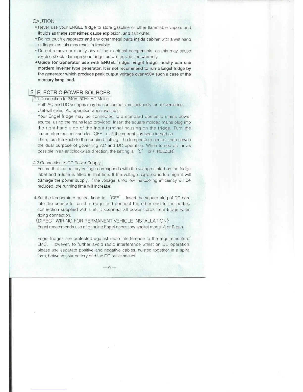 Engel MT60F-G4-S; MT80F-G4-S - Electric Power Sources; Connection to 240 V, 50 Hz AC Mains; Connection to DC Power Supply