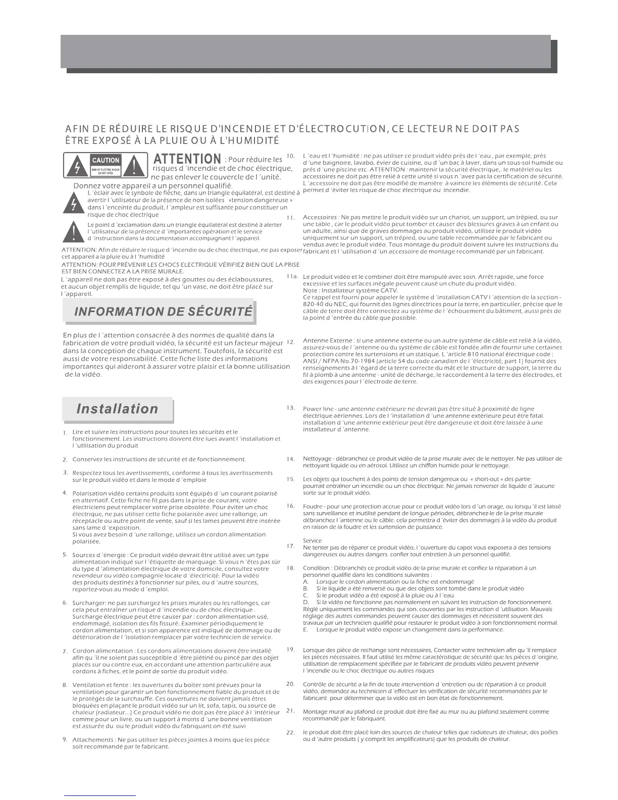 INFORMATION DE SECURITE