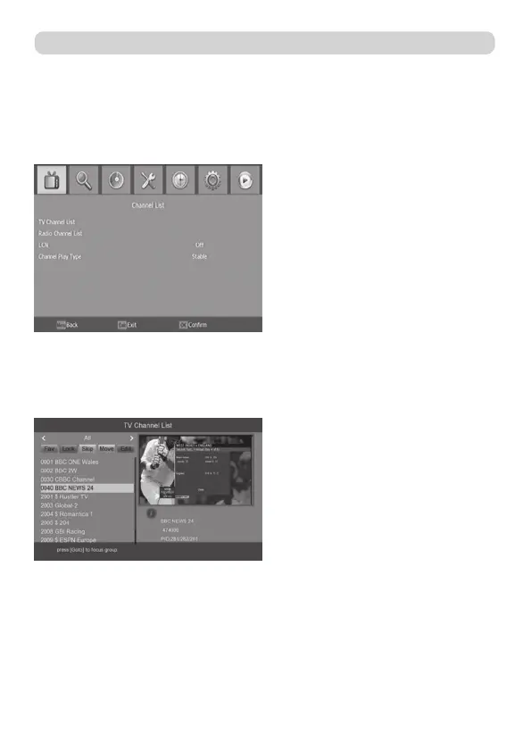 Za uređivanje liste programa odaberite listu TV (TV Channel List) ili Radio (Radio Chan-