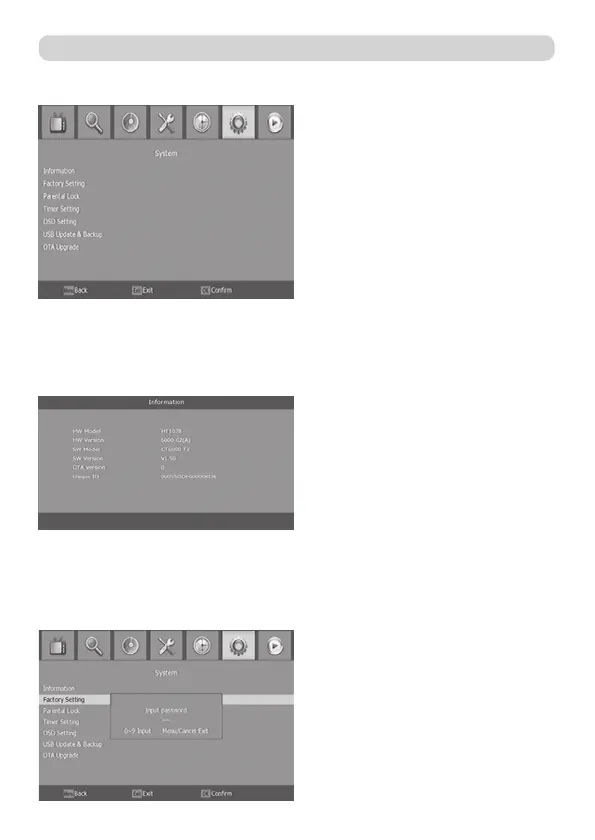 Prikazuje se sučelje s raznim informacijama o prijemniku. Informacije o sklopovlju