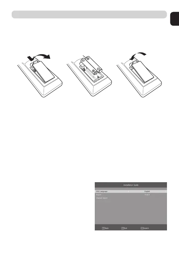 Paso 1: Abra la tapa del compartinento para las pilas del mando a distancia, inserte 2 pilas