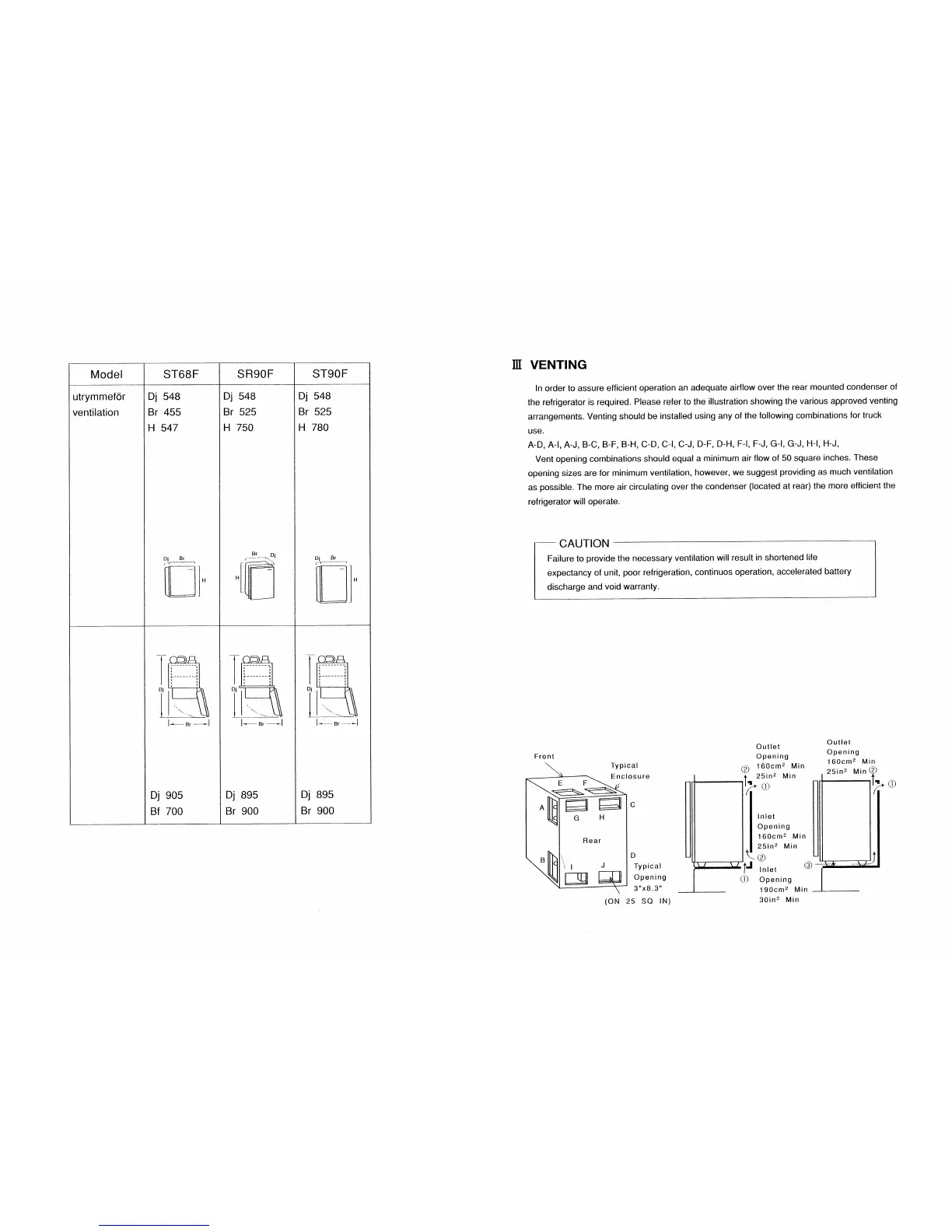 the refrigerator is required. Please refer to the illustration showing the various approved venting