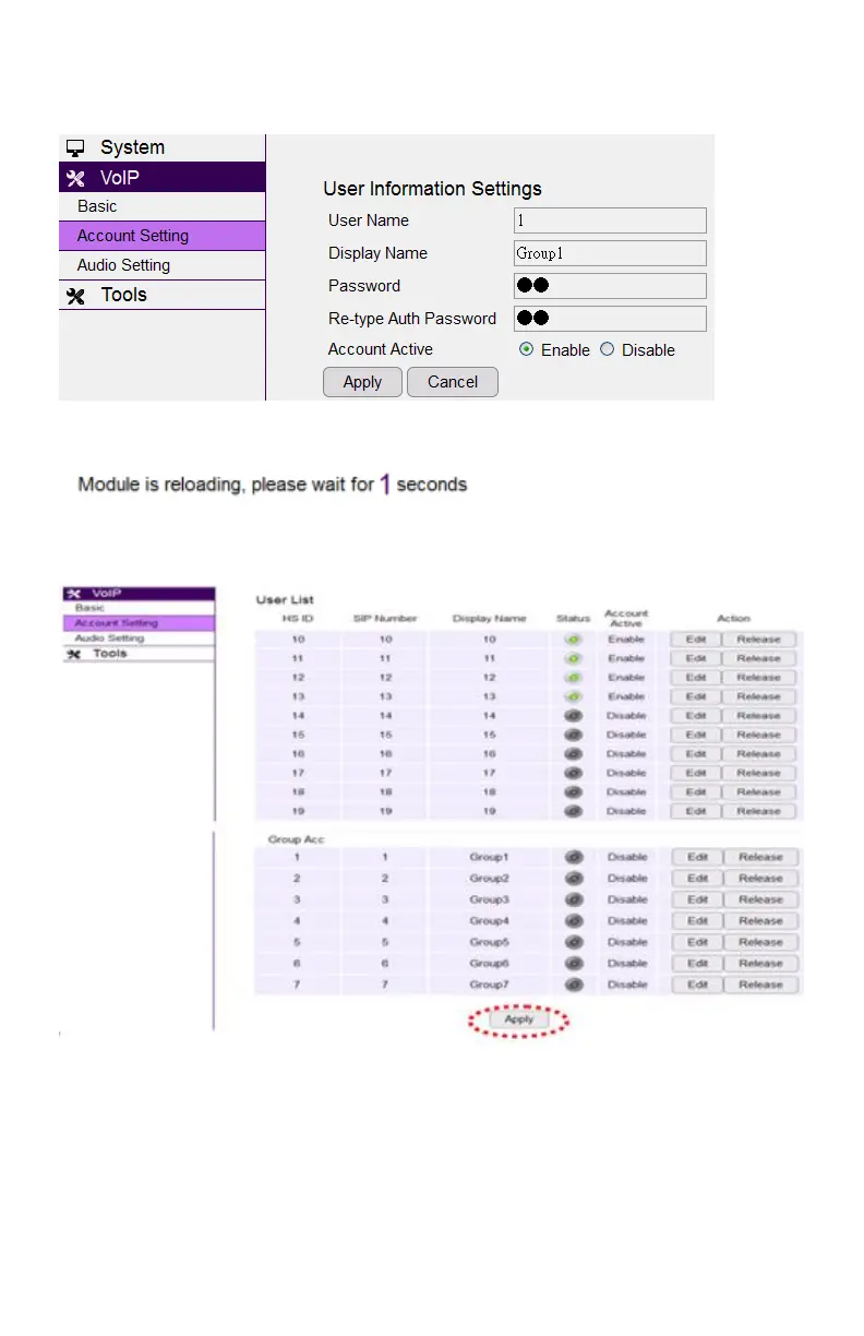Click the Apply button to save the setting as the screen shows: