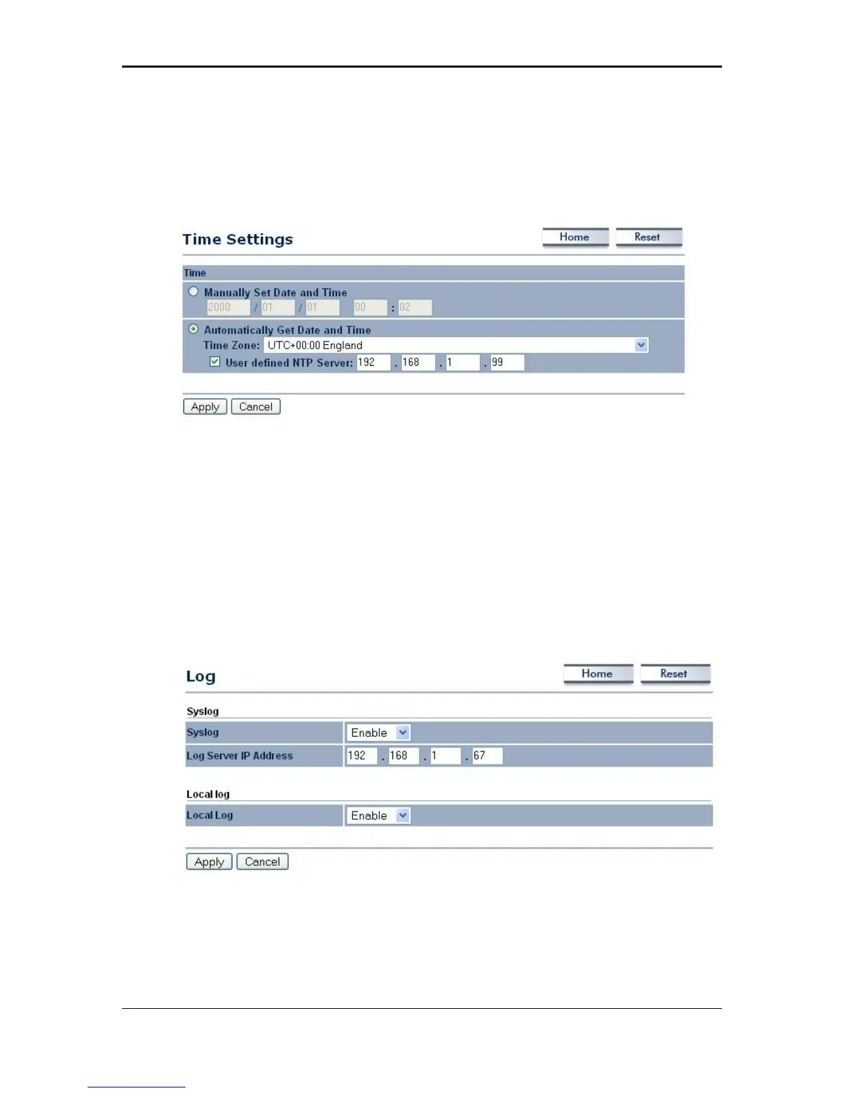 Click on the Time Settings link under the Management menu. This page allows you