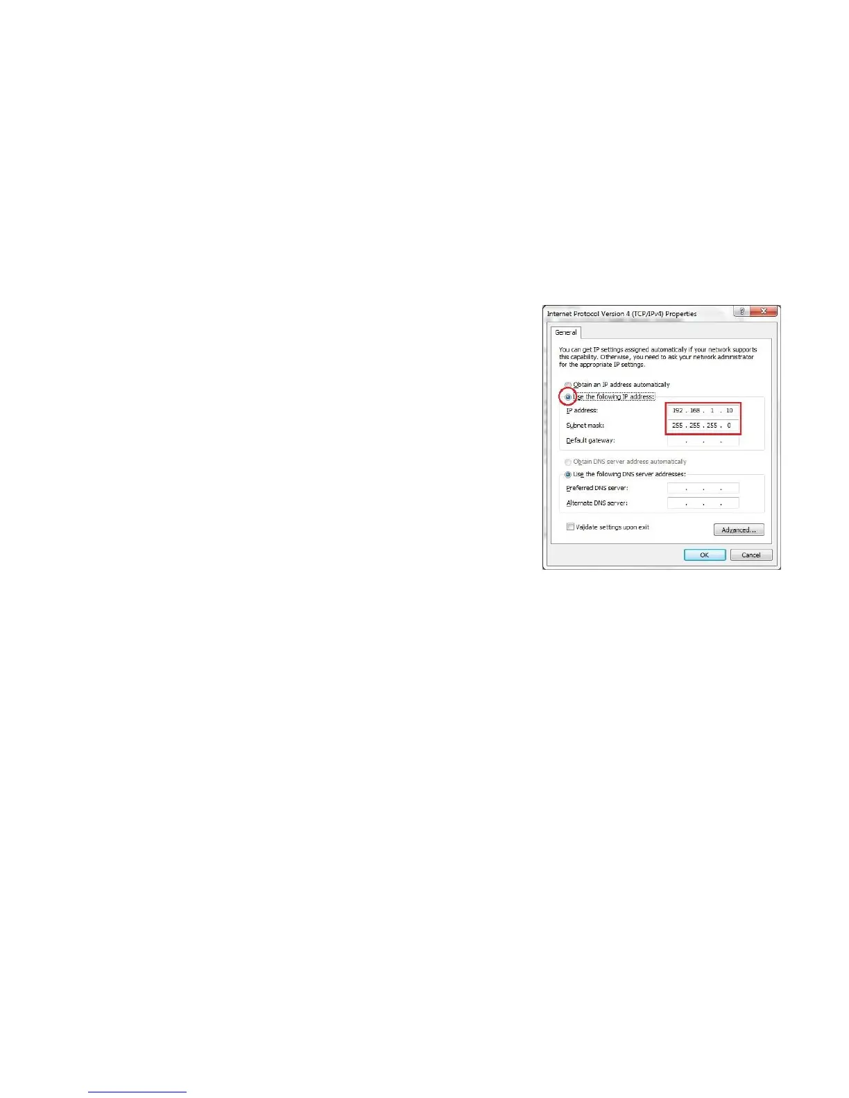 PC IP address: 192.168.1.2 – 192.168.1.255