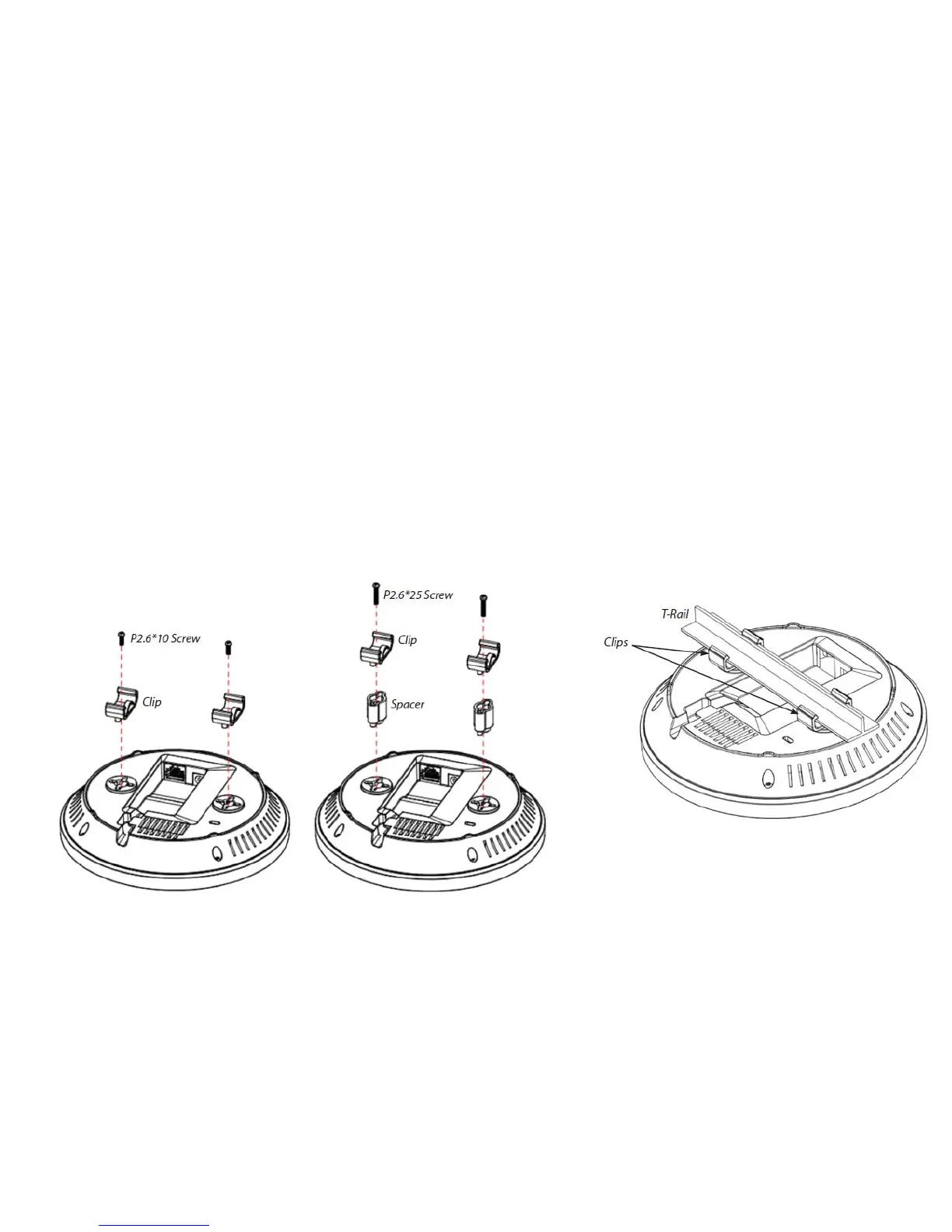 1. Attach the T-Rail connectors to the bottom cover of the AP using the provided short screws.