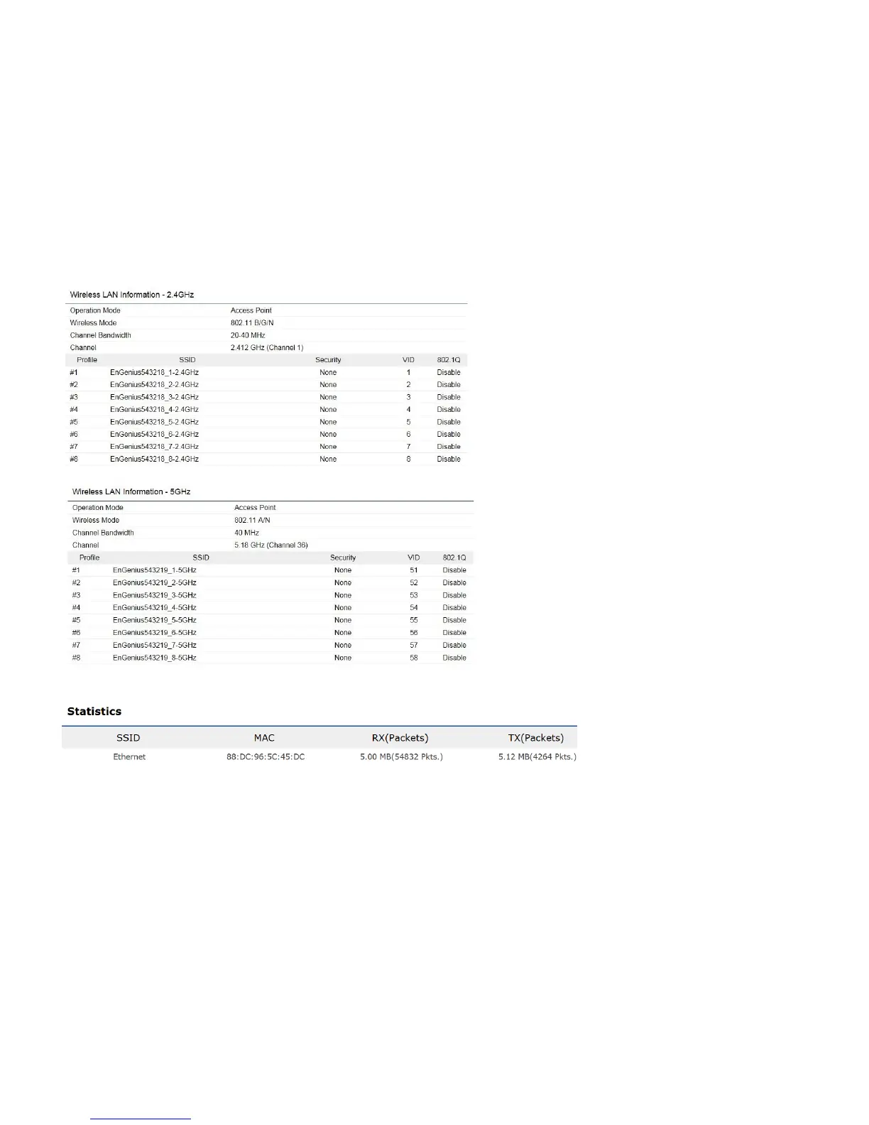 section shows Mac information such as SSID, MAC address, RX and TX.