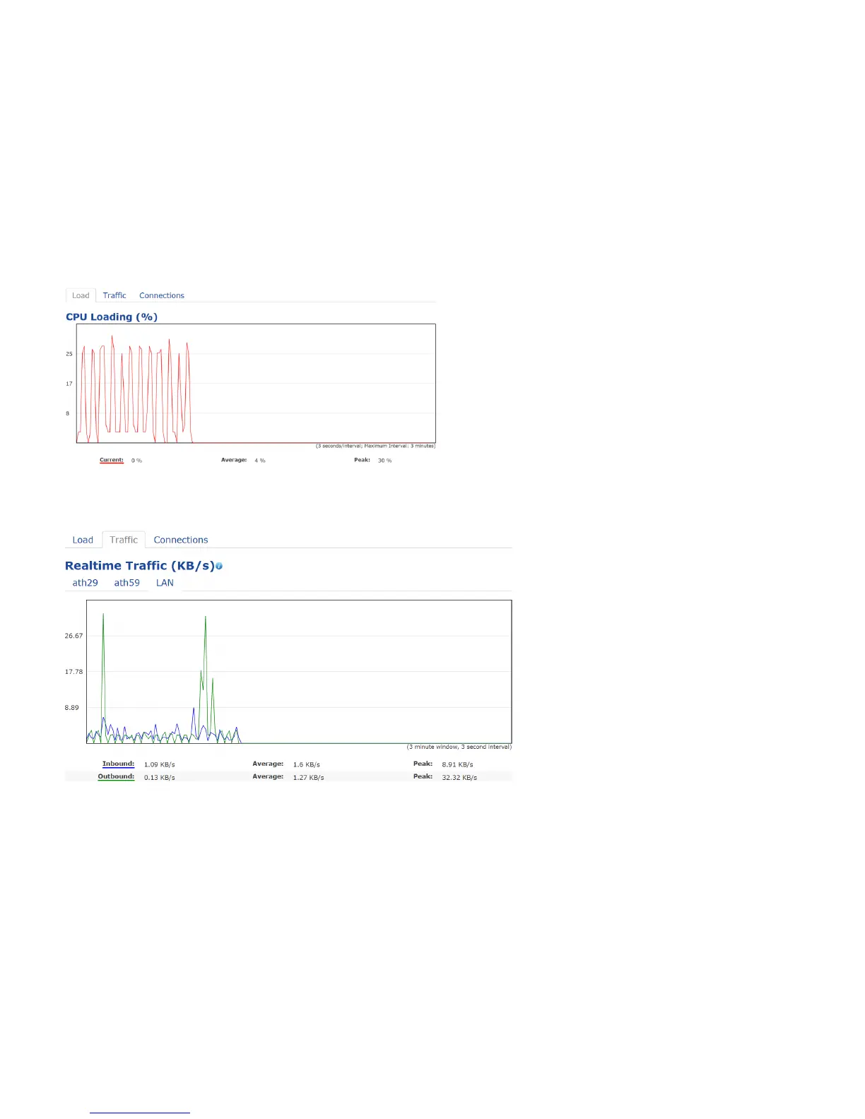 : 2.4GHz and 5GHz and Ethernet port inbound and outbound traffic by current, average and peak time.