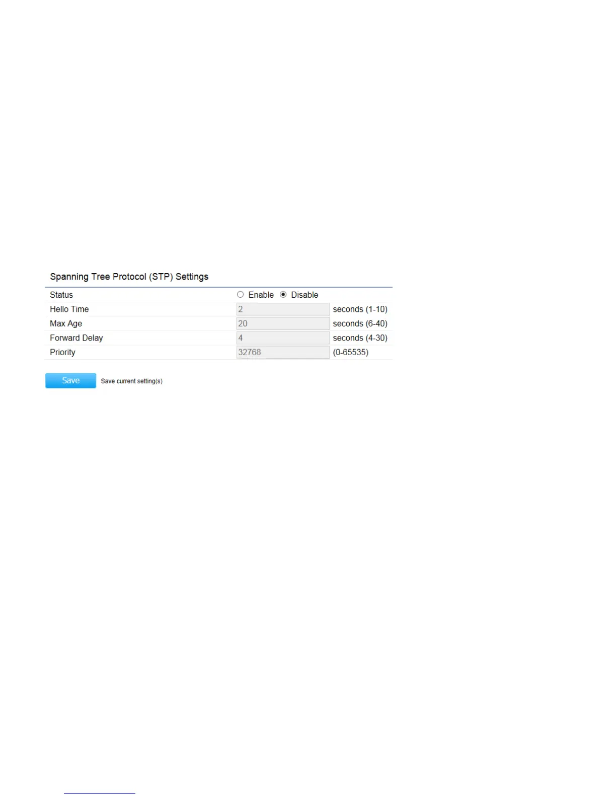 This page allows you to modify the Spanning Tree settings. Enabling the Spanning Tree protocol will prevent network loops in your