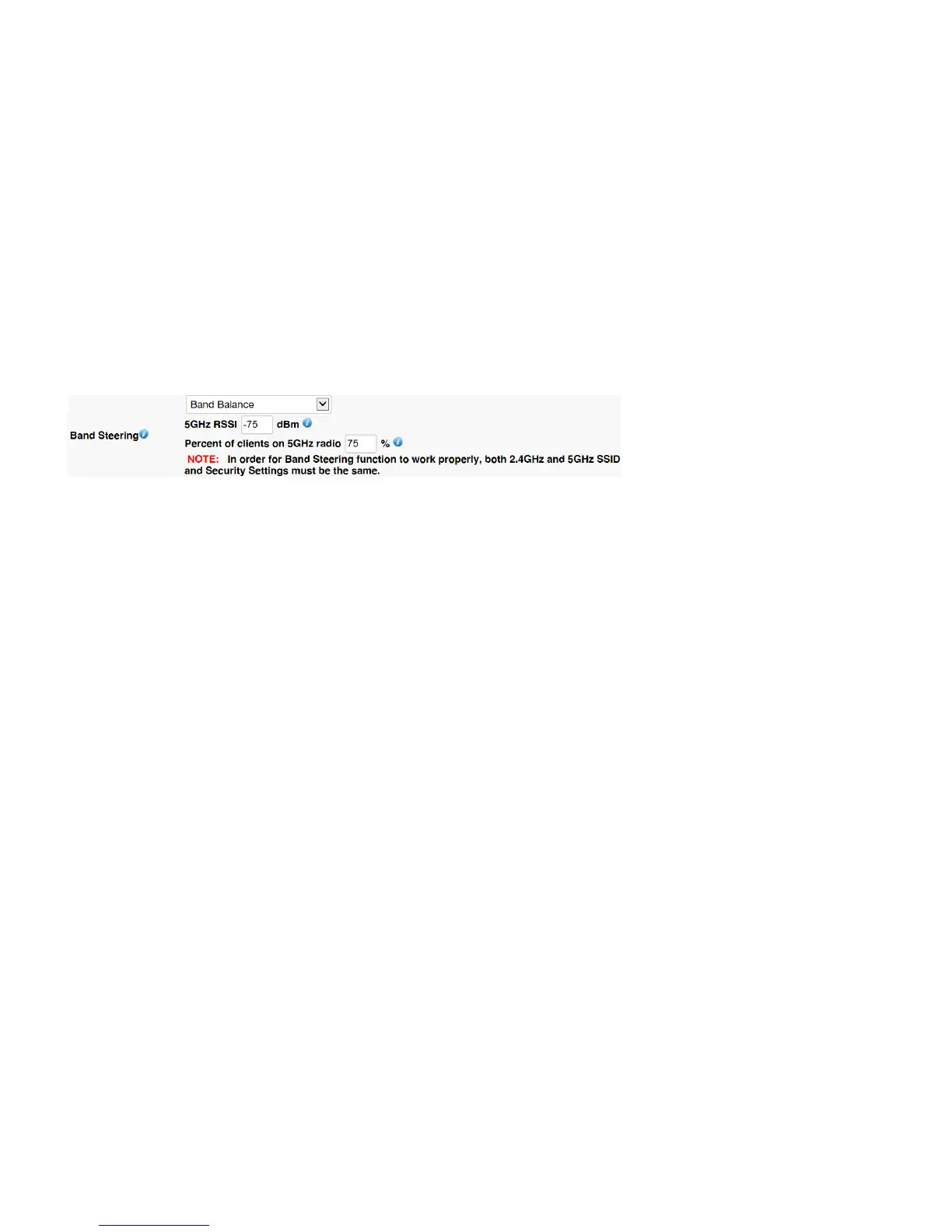 : When band steering is configured to Band Balance mode, the AP will steer dual band capable client devices to 5GHz