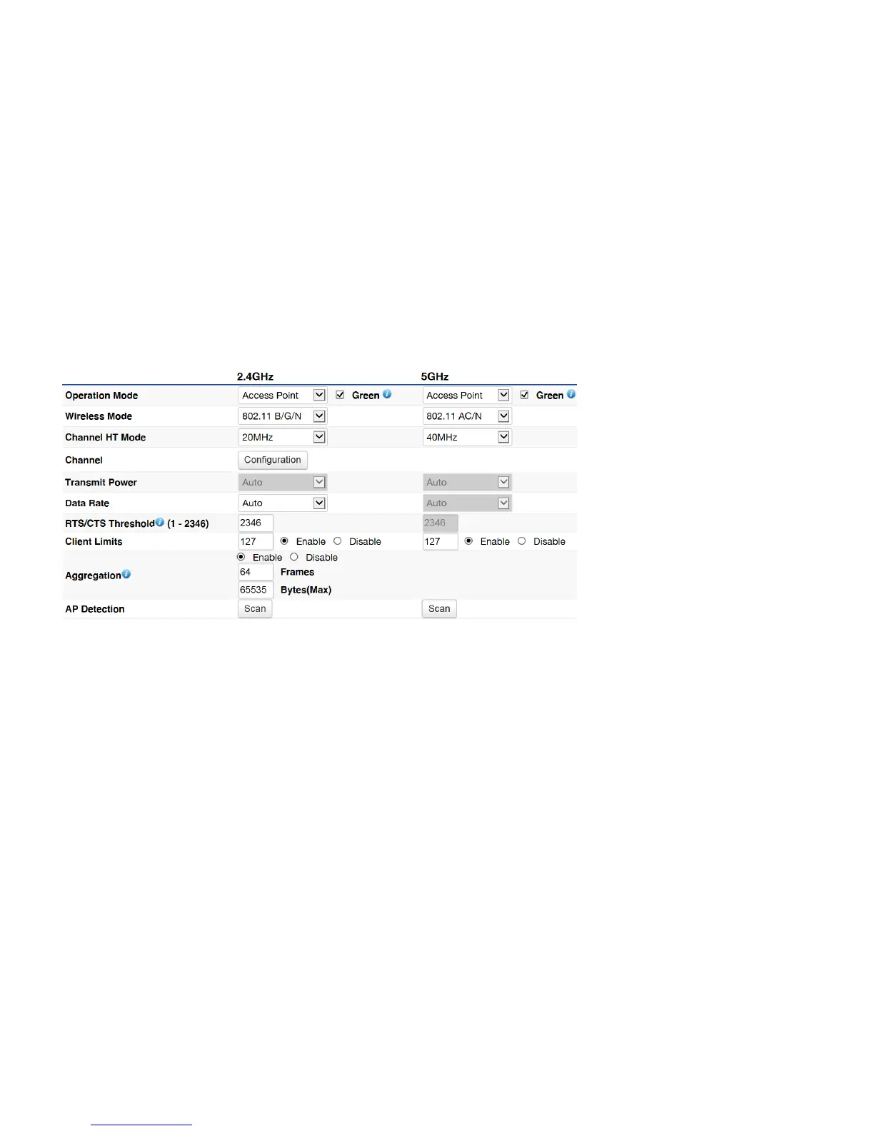 is 20 MHz on 2.4GHz frequency radio and 40 MHz on 5GHz frequency radio. Considering the different applications, users can decide