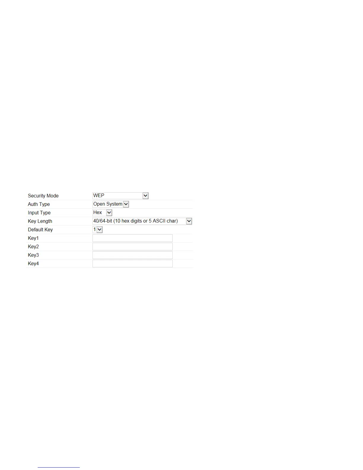 Select the desired option and ensure the wireless clients use the same setting. Your choices are: 64, 128, and 152-bit