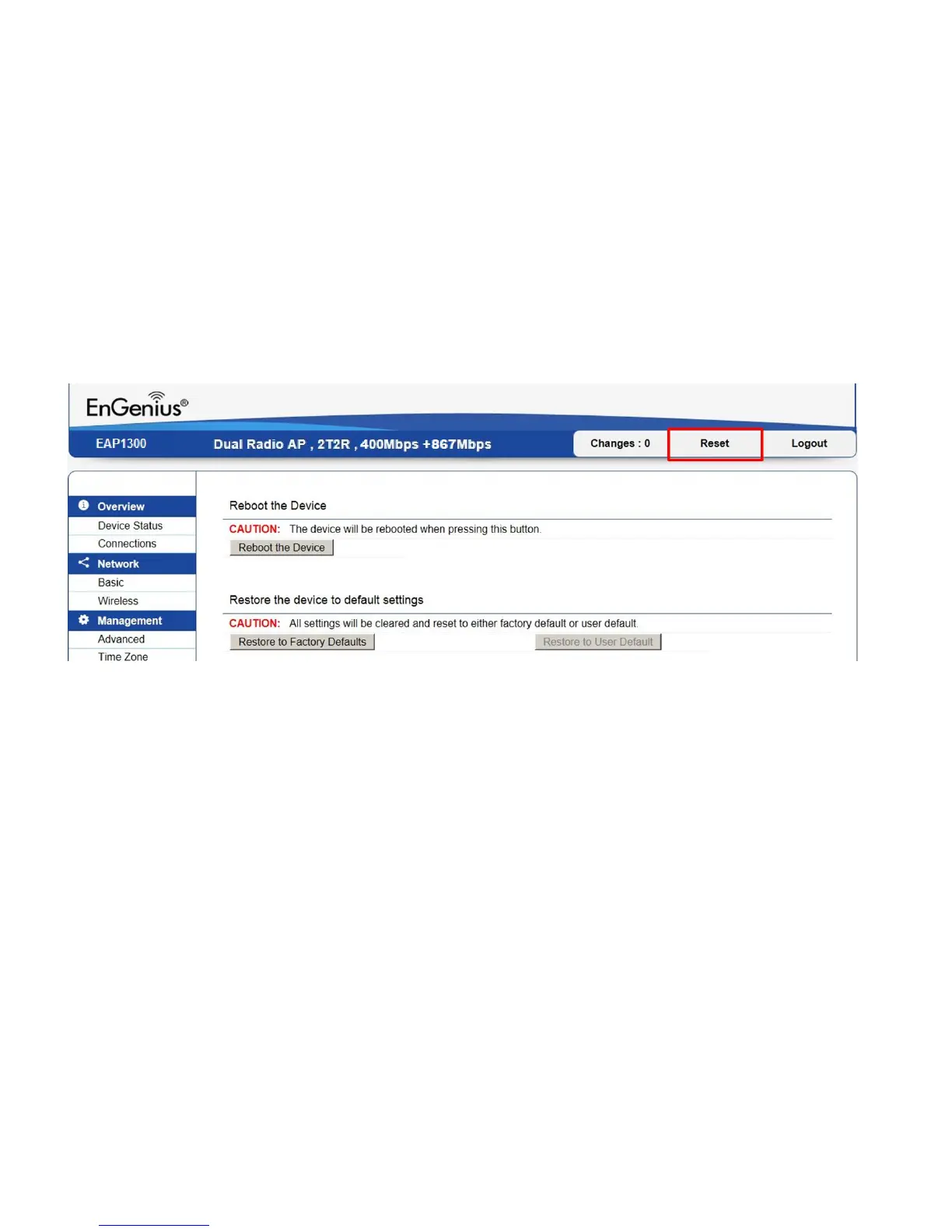 Once you click reset button, you will see the options for reboot or restore this AP.