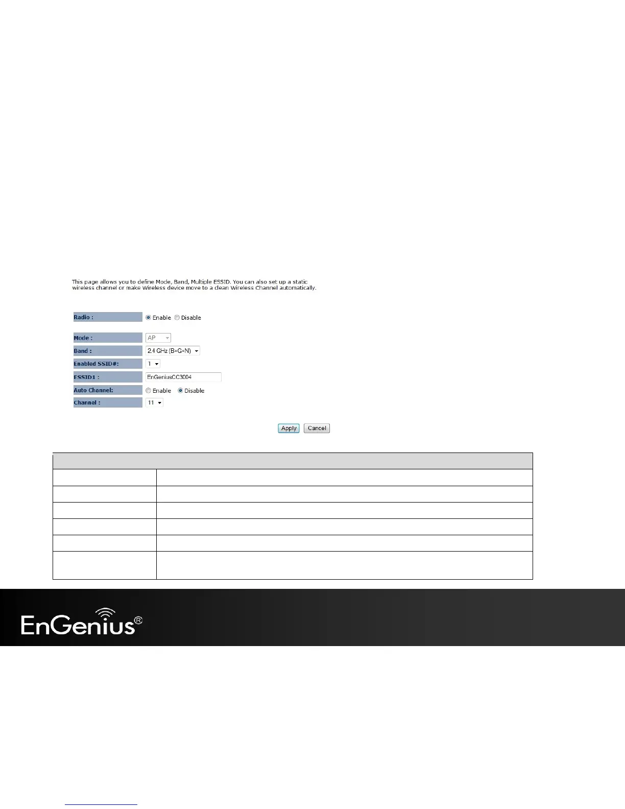 The Basic option of the Wireless menu displays the basic wireless options of the EAP150.