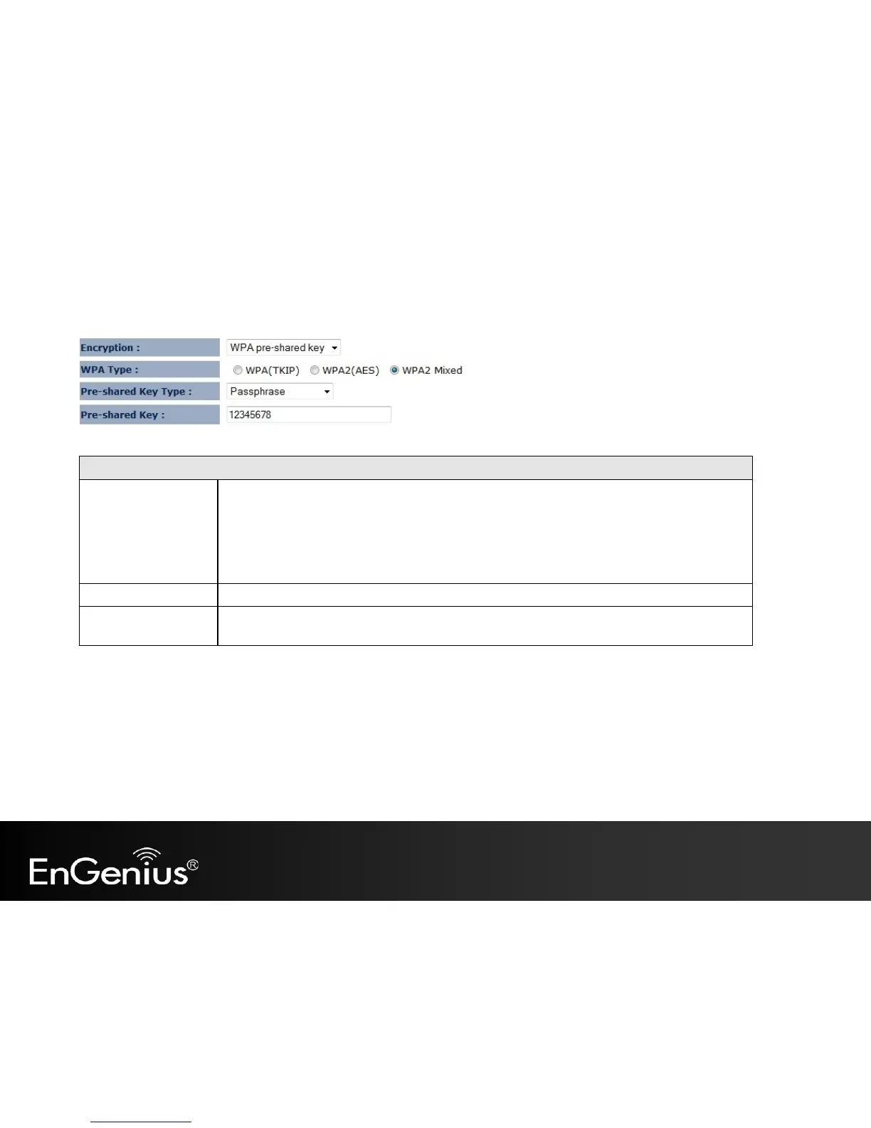 WPA2 Mixed: Allows the use of both WPA and WPA2 clients on the network.
