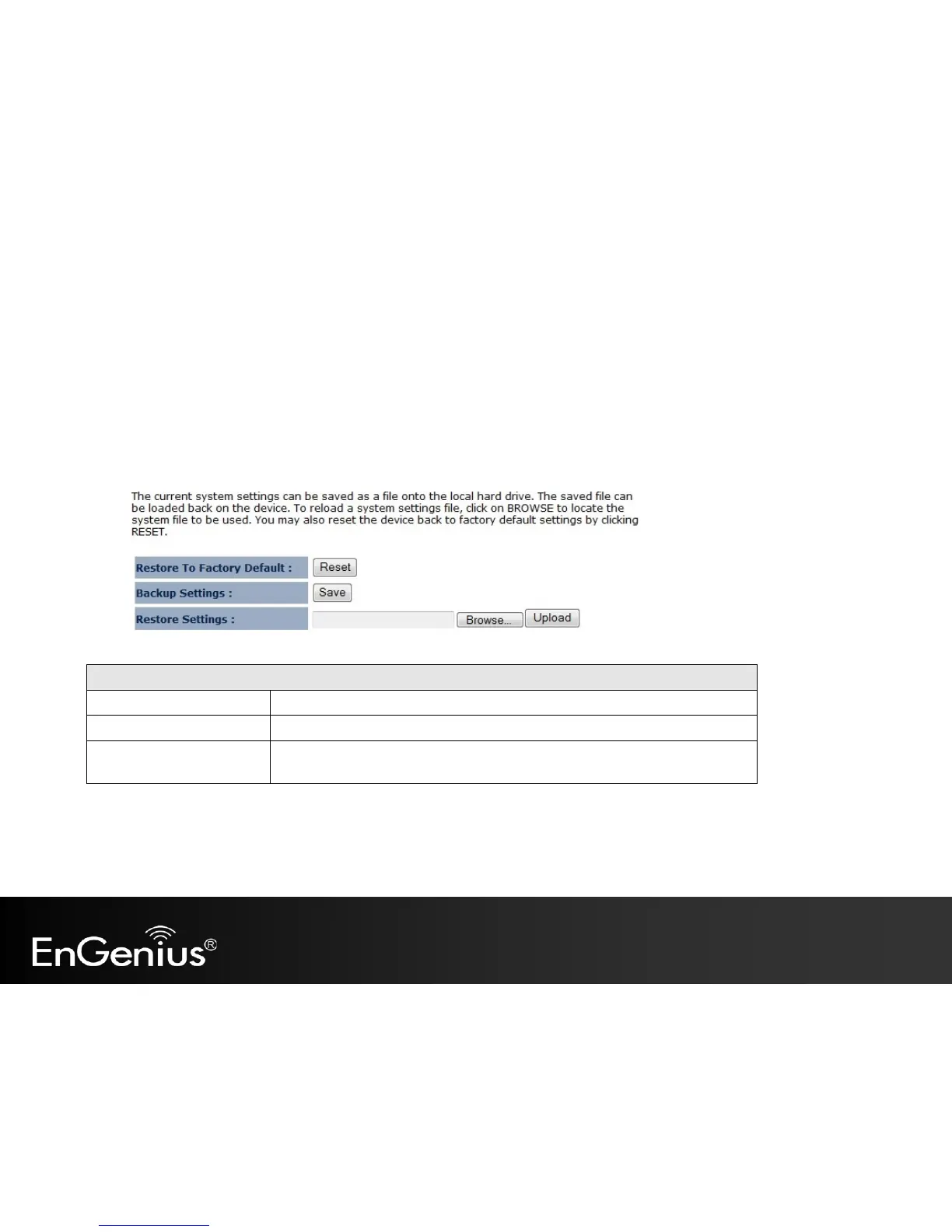 the configurations, you also can re-load the saved configurations into the device through the Restore Settings. If