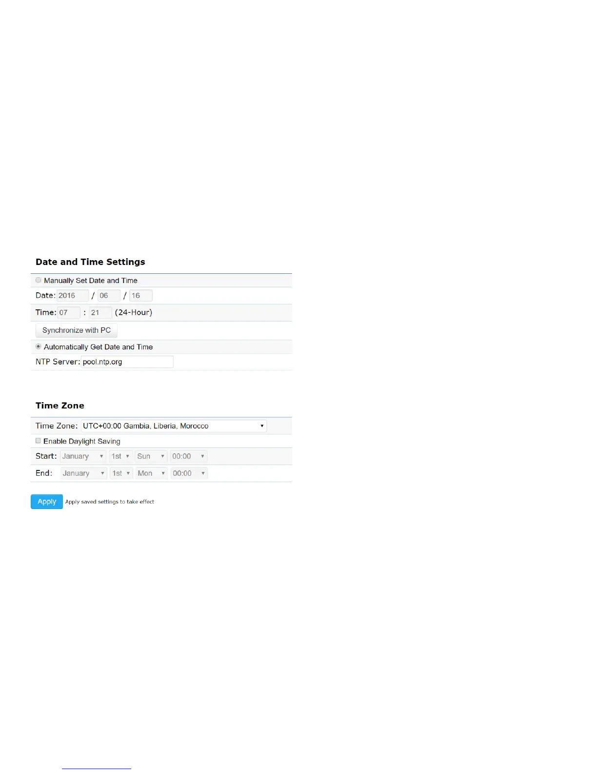 This page allows you to set the internal clock of the AP.