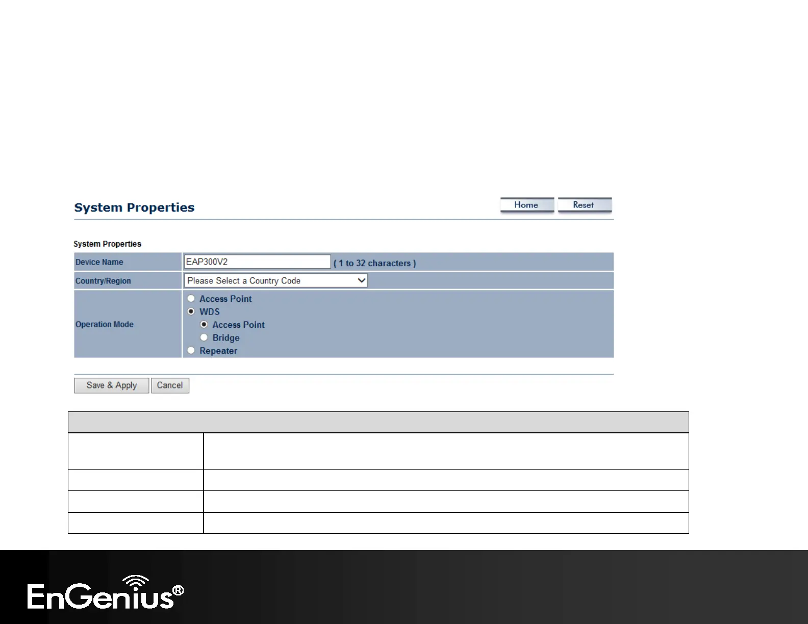 The EAP300 supports four operating modes: Access Point, WDS Access Point, WDS Bridge and Repeater.