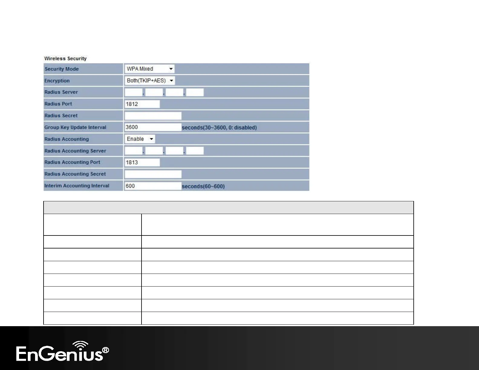 Radius Accounting Server Enter the IP address of the Radius accounting server.