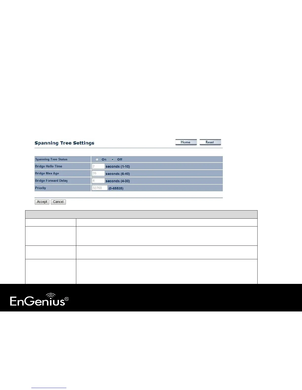 This page allows you to modify the Spanning Tree settings. Enabling Spanning Tree protocol will prevent network loops