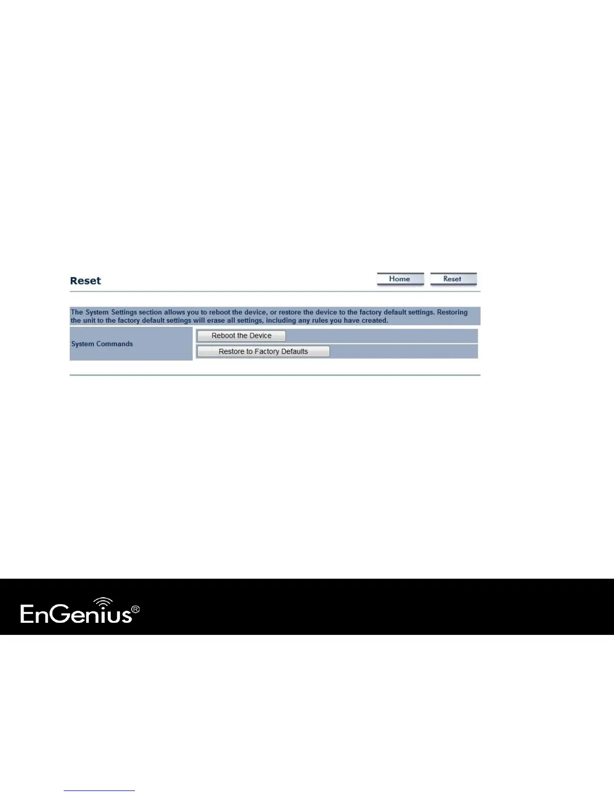 In some circumstances it may be required to force the device to reboot. Click on [Reboot the Device] to reboot.