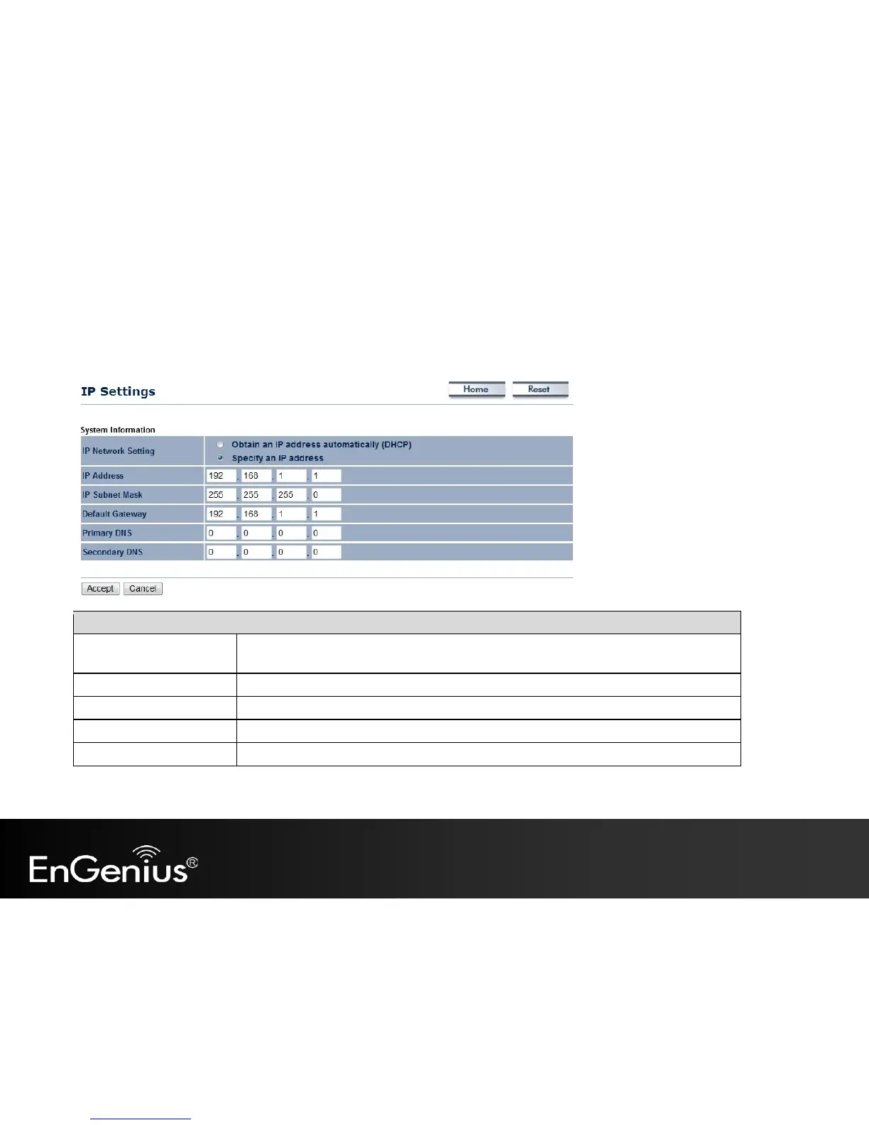 Select whether the device IP address will use the static IP address specified in the IP Address