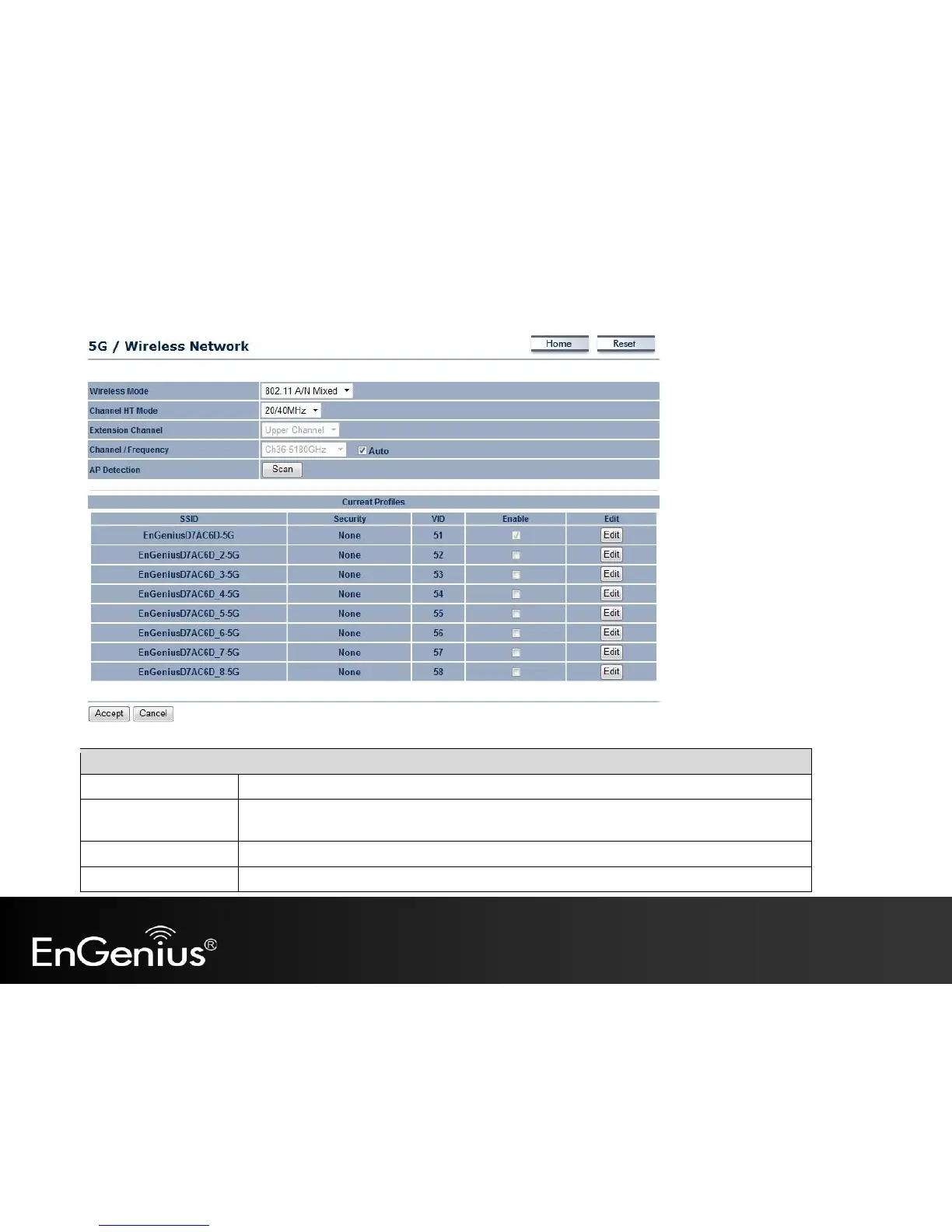 Wireless mode supports 802.11b/g/n mixed mode in 2.4G and 802.11a/n mixed mode in 5G.