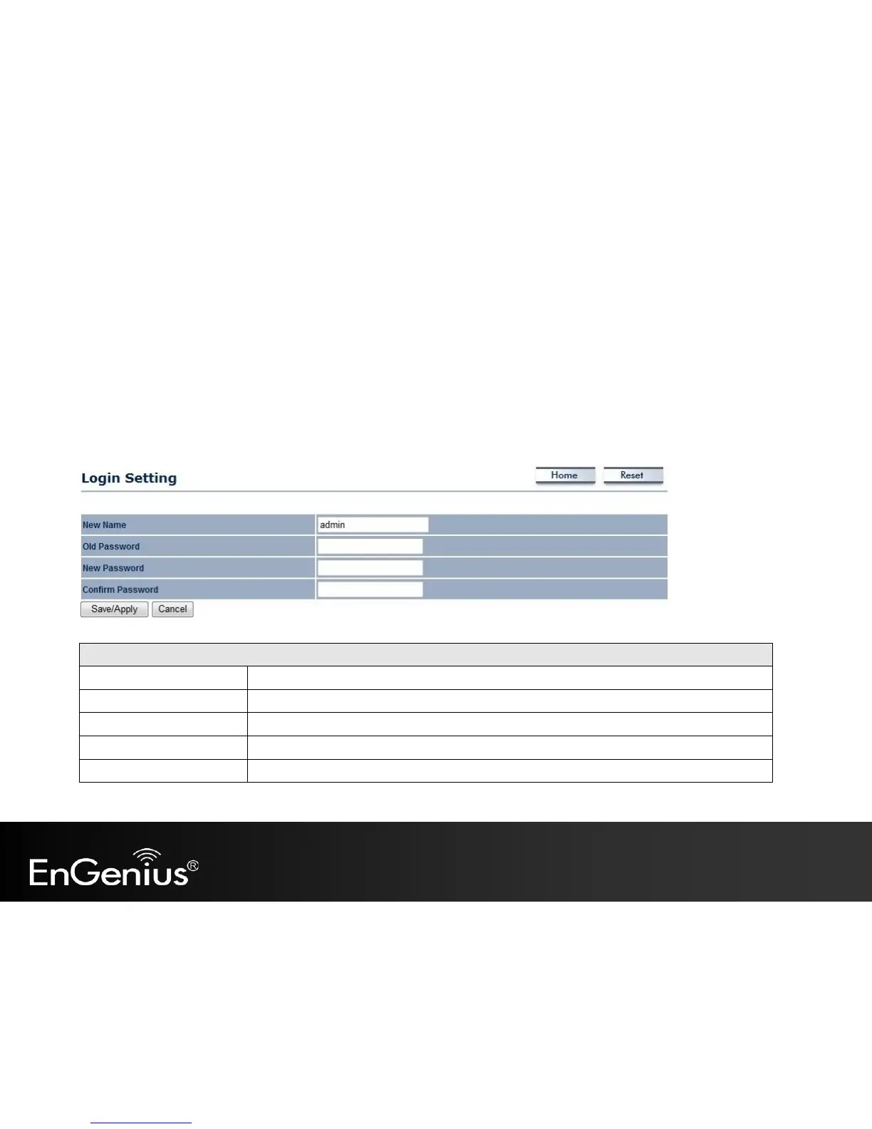 This page allows you to change the EAP600 username and password. By default, the username is admin and the password