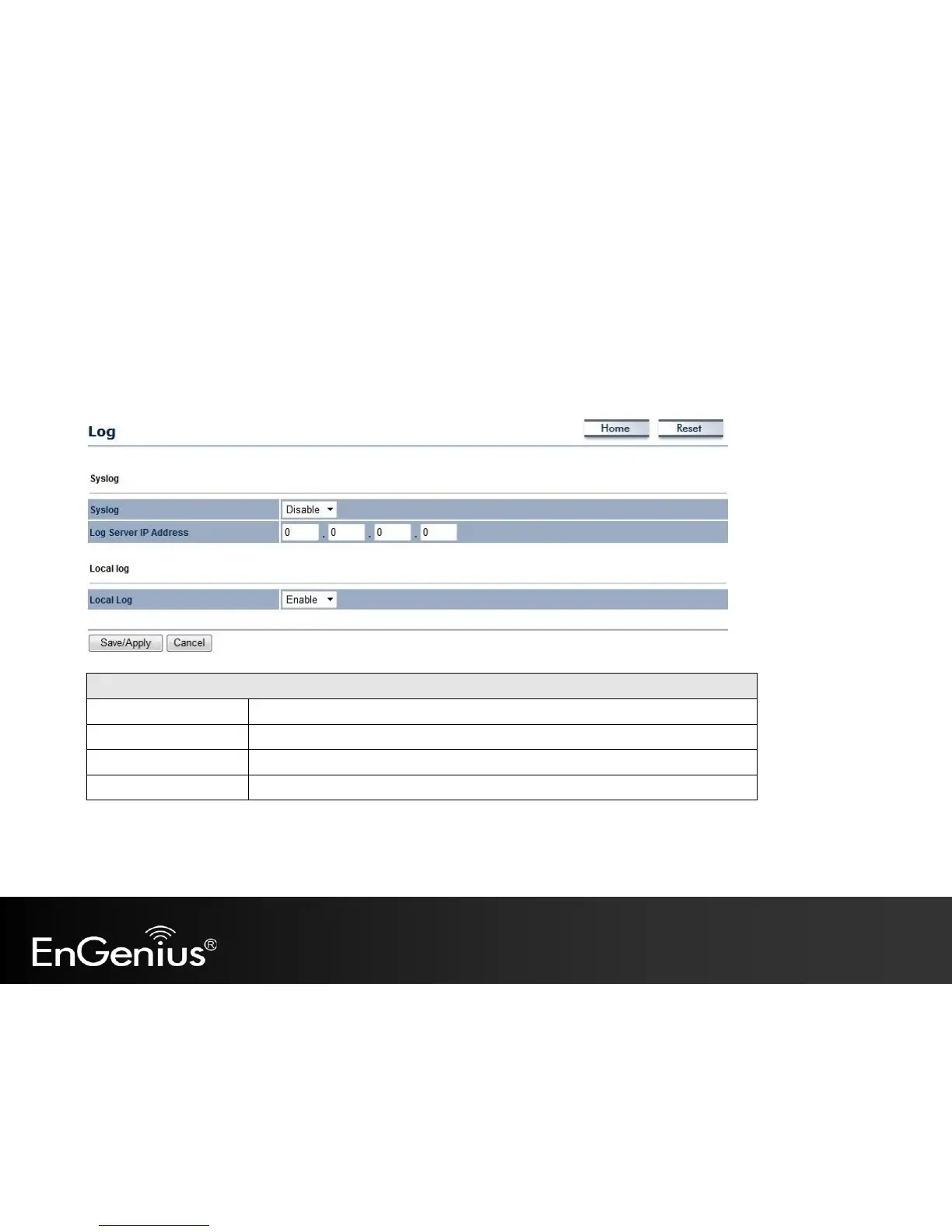 This page allows you to setup Syslog and local log functions of the EAP600.