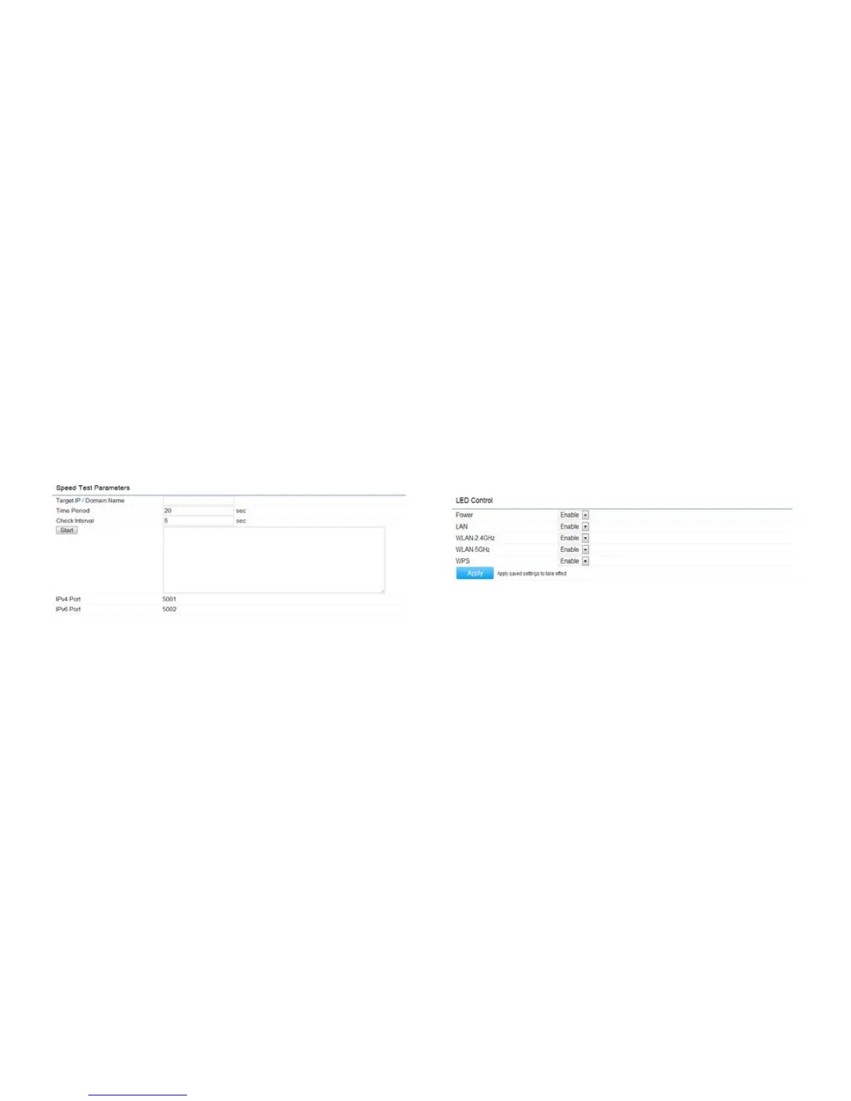 Power status, LAN interface, 2.4G/5G WLAN interface