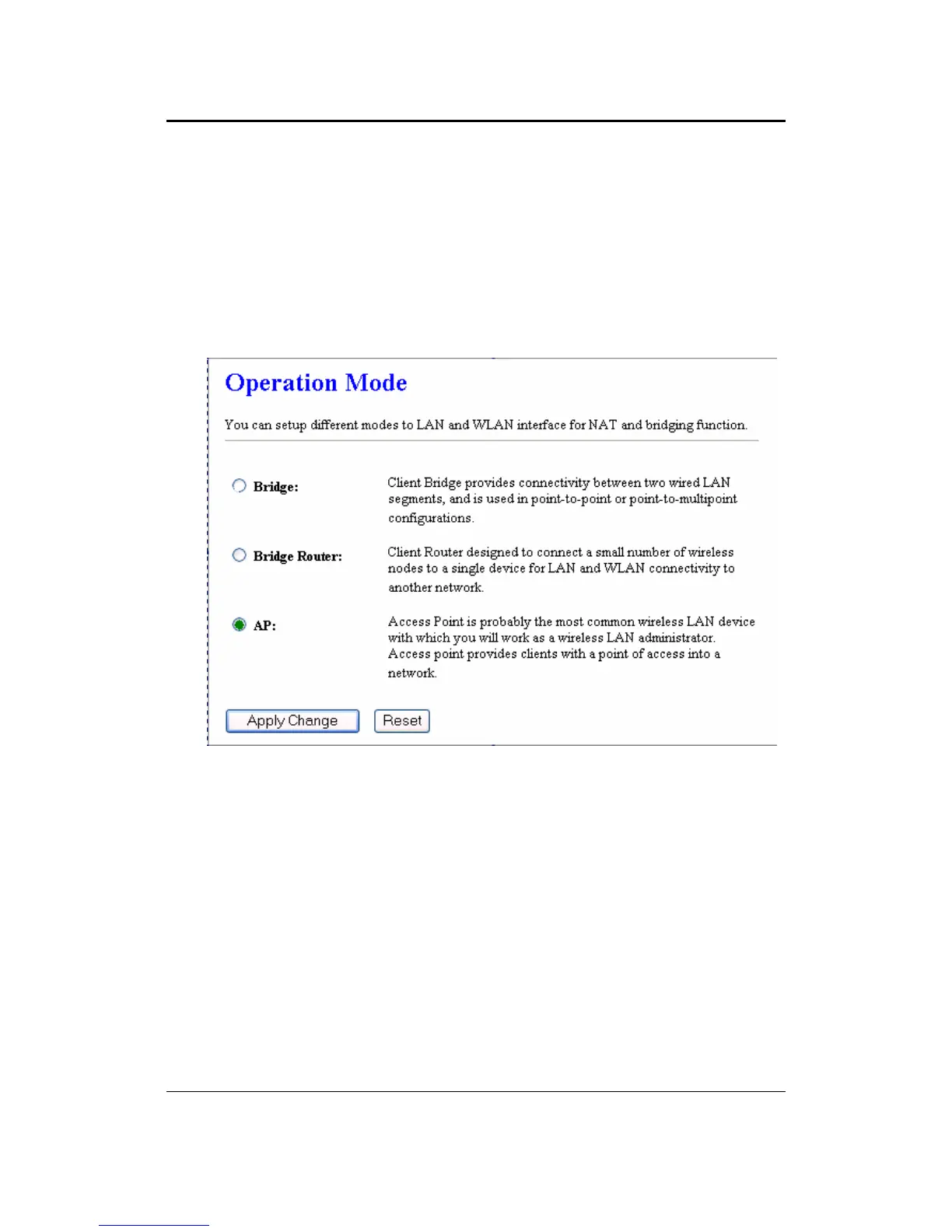 4 Since this device is currently in Access Point mode, the AP radio button will be